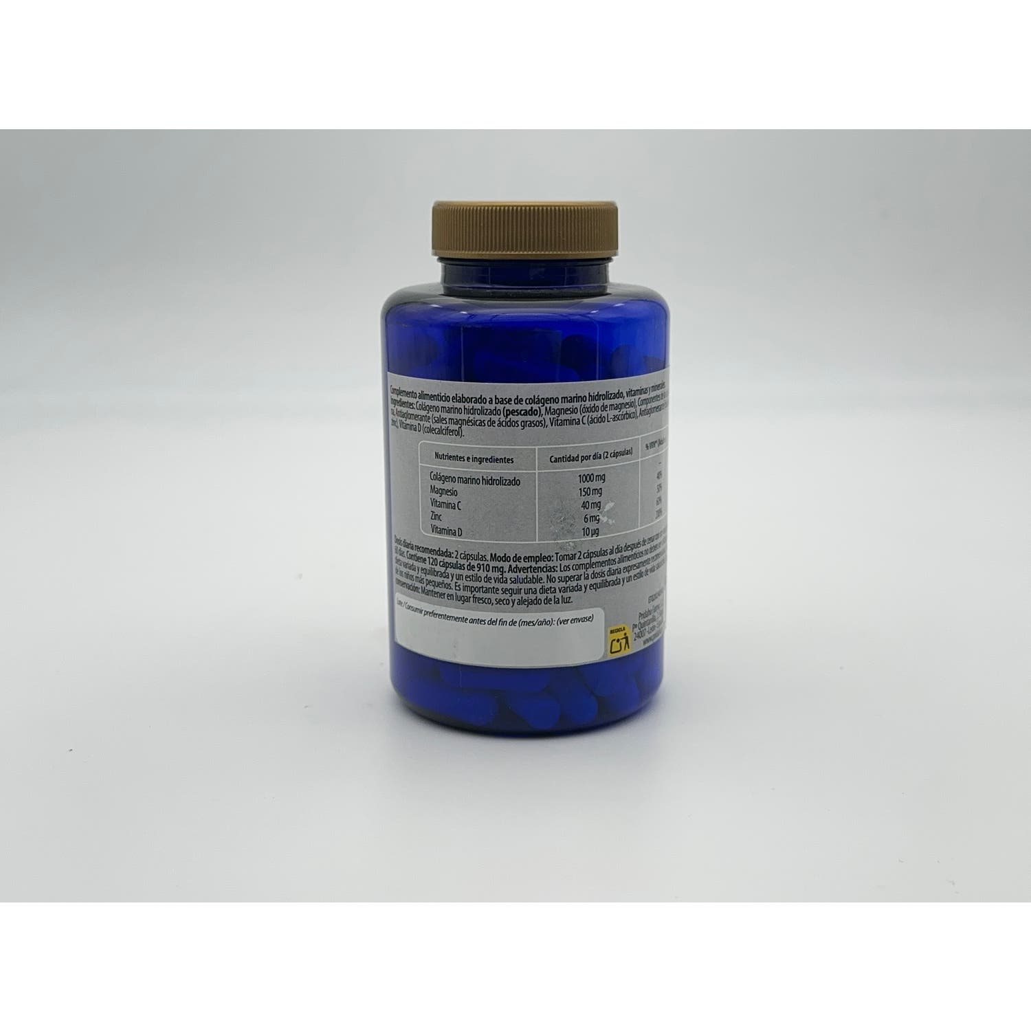 Ingredientes: Colágeno marino hidrolizado (pescado), Magnesio (oxido de magnesio, Componentes de la cápsula (gelatina), Maltodextrina, Antiaglomerante (sales magnésicas de ácidos grasos), Vitamina C (acido L-ascórbico), Antiaglomerante (dióxido de silicio), Zinc (óxido de zinc), Vitamina D (colecalciferol).