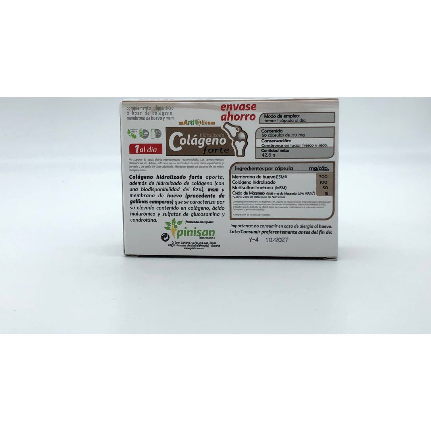 No contiene colorantes, conservantes, azúcares añadidos ni edulcorantes. Se recomienda para la prevención y el tratamiento del dolor, la inflamación y la rigidez articular.