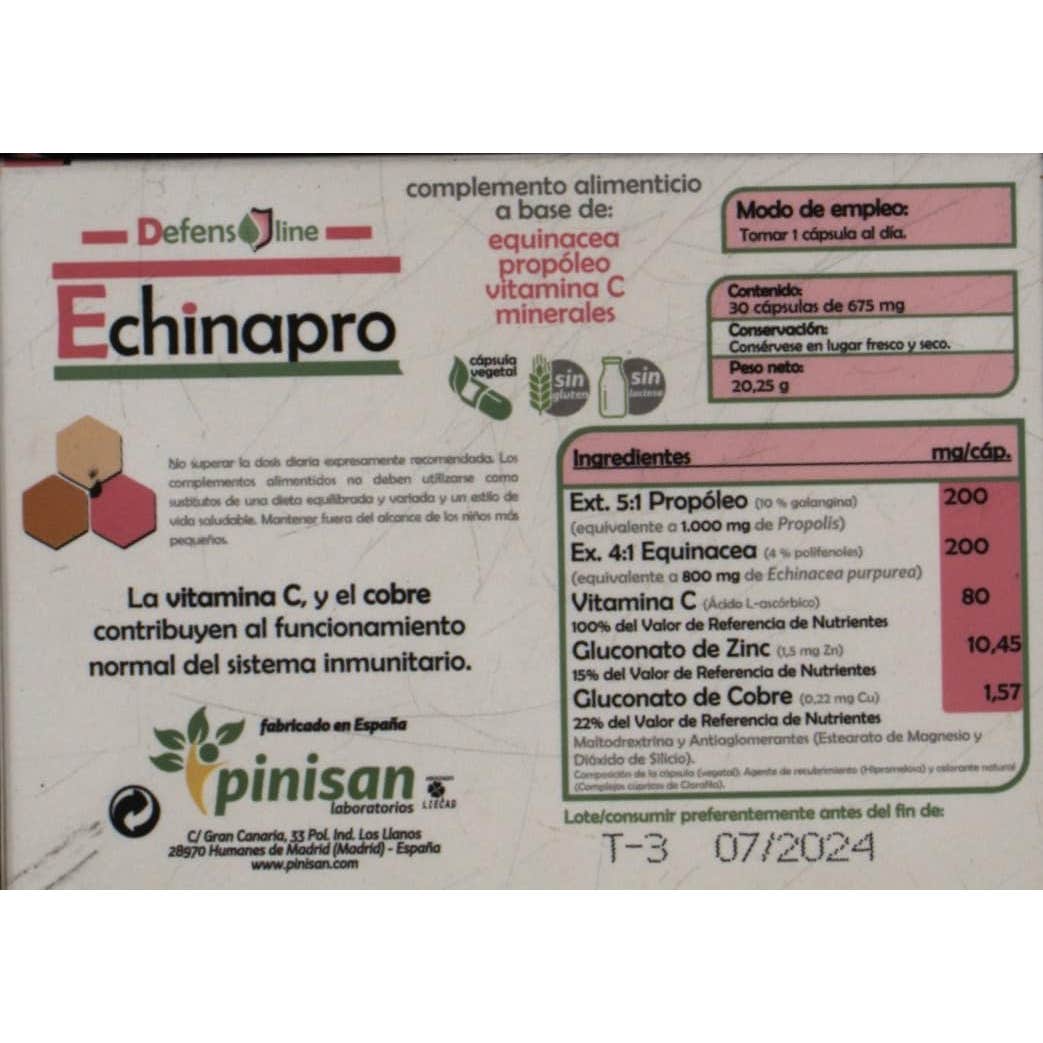 Complemento alimenticio que contribuye al normal funcionamiento del sistema inmunitario. Contiene propoleo y equinácea en forma de extractos titulados, para garantizar una mayor y constante presencia de sus principios activos.