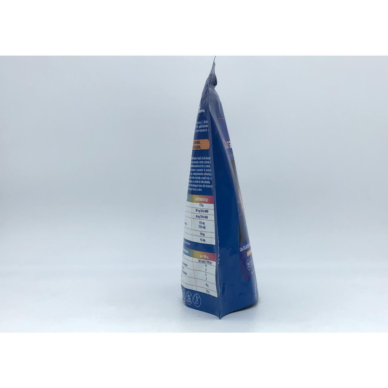 Está compuesto por vitamina C, magnesio y proteínas, que contribuyen a la formación normal de colágeno, a conservar la masa muscular y a disminuir el cansancio y la fatiga. No contiene edulcorante, aromas, colorantes ni pescado.