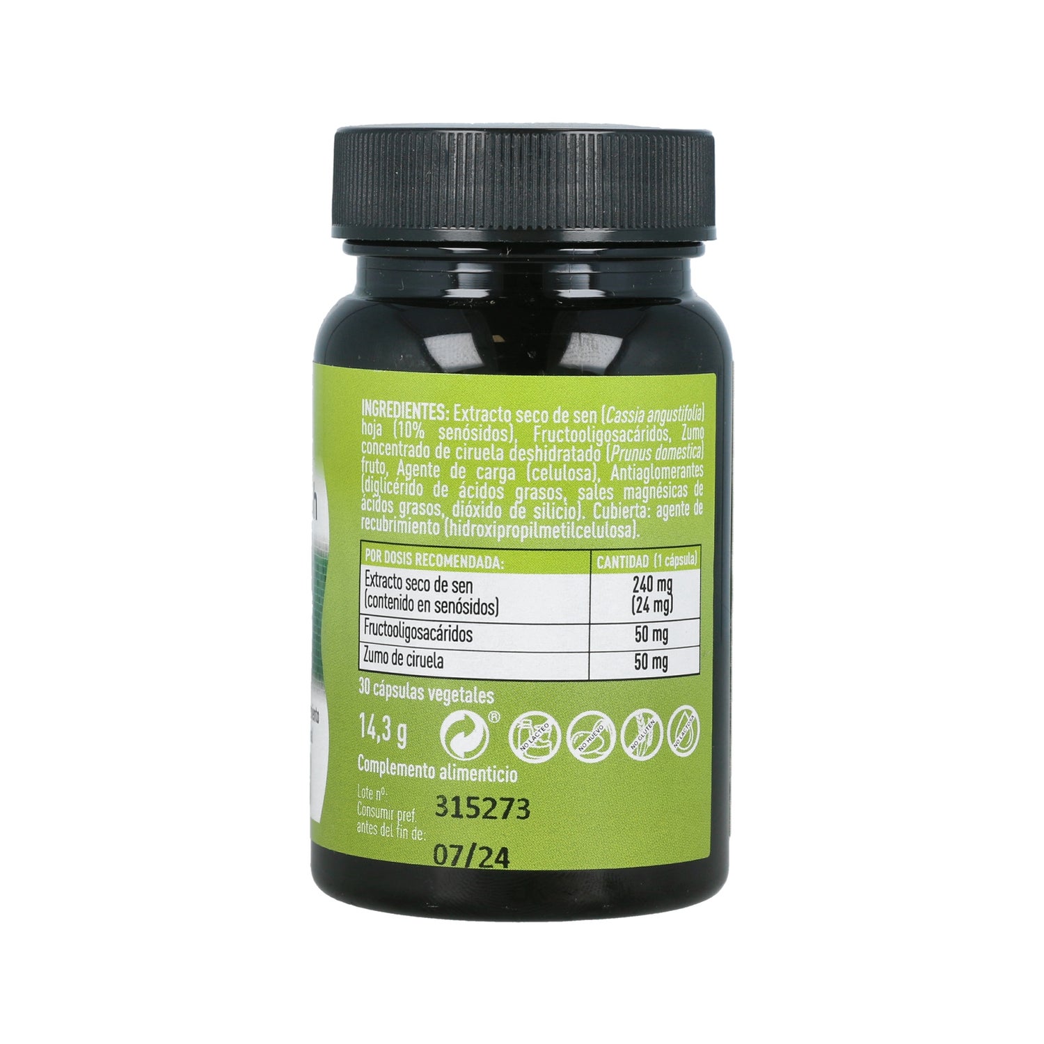 Cápsulas elaboradas con ingredientes saludables para el organismo que favorecen el tránsito intestinal en casos de estreñimiento, gracias a su fórmula con extracto de Sen, Fructooligosacáridos (FOS) y zumo de ciruela. Su acción es de un 83% durante el primer y segundo día de tratamiento.