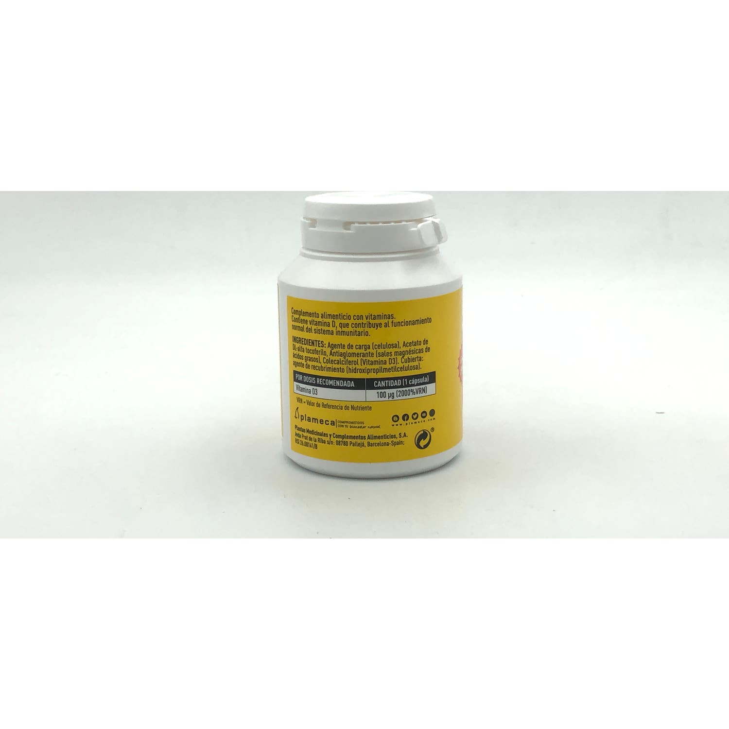 Plameca Vitamina D3 4000 Ui es un complemento alimenticio a base de vitamina D que contribuye al funcionamiento normal del sistema inmunitario y al mantenimiento de los huesos y los dientes en condiciones normales.