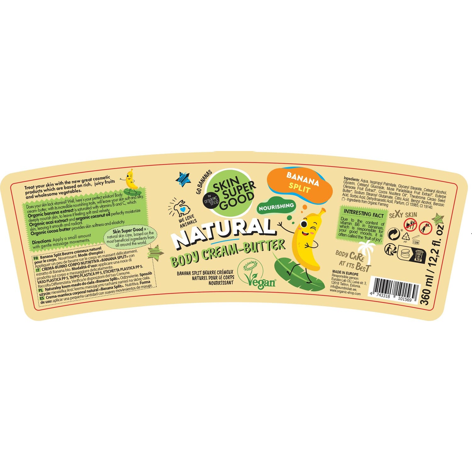 Manteca corporal hidratante elaborada a base de aceite natural de coco. Contribuye a reparar la piel y otorga suavidad y elasticidad. Con glicerina, manteca de plátano y semillas de cacao. Se absorbe rápidamente en la piel y no deja residuos grasos. Aporta nutrientes esenciales para la salud cutánea. Es un producto vegano, elaborado en Rusia sin siliconas, sulfatos ni parabenos. Indicado para todo tipo de piel.
