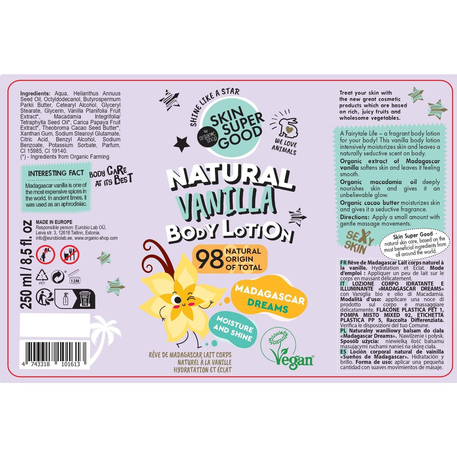 Planeta Orgánica Vanilla Body Lotion Madagascar Dreams 250ml es una loción corporal hidratante elaborada a base de aceite natural de coco. Además, contiene aceite de nuez de macadamia, extracto de papaya, semillas de cacao y extracto de vainilla de Madagascar, para una piel más suave y elástica.
