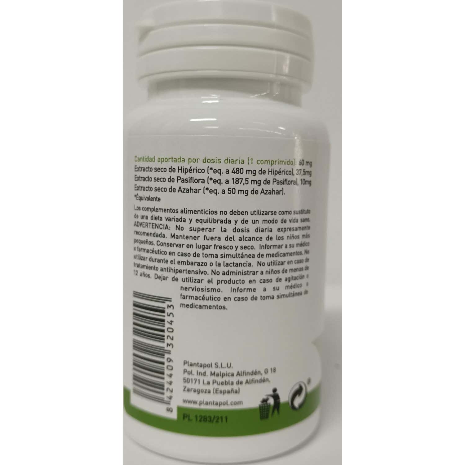 Plantapol Hiperico Pasiflora Azahar 100 Comprimidos es un complemento alimenticio diseñado para favorecer el equilibrio nervioso y el bienestar emocional. Este producto es especialmente útil para quienes desean aliviar los procesos de sobrecarga emocional y/o física y mejorar la calidad del sueño.