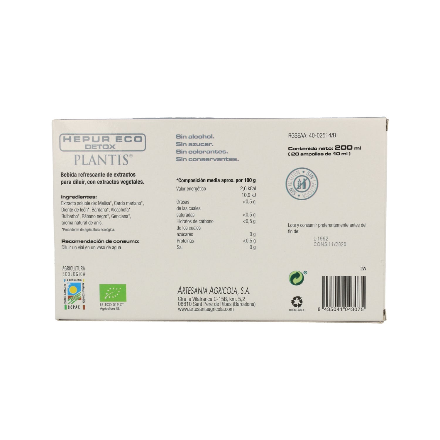 Extracto soluble de melisa, Cardo mariano, Diente de león, Bardana, Alcachofa, Ruidarbo, Rábano negro, Genciana.