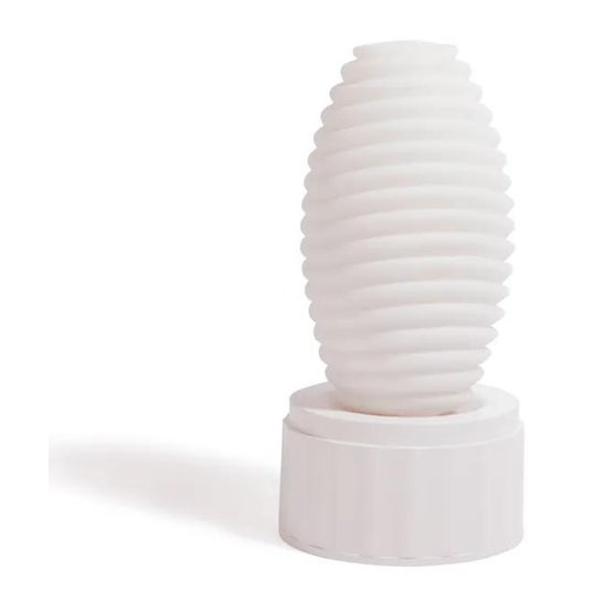 Una vez el juguete esté caliente y desinfectado, es hora de empezar a disfrutar (aunque también puedes utilizarlo directamente sin tener que calentarlo). Retíralo de la base y aplica un poco de lubricante en la entrada y el interior del juguete o en el pene directamente. A continuación, introduce tu pene y empieza a mover el masturbador de arriba abajo repetidamente para estimular el pene mediante la fricción generada por las texturas interiores.