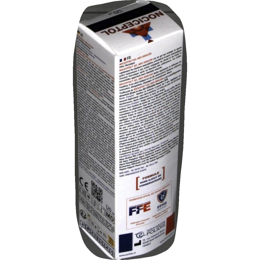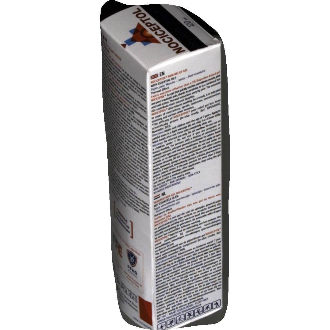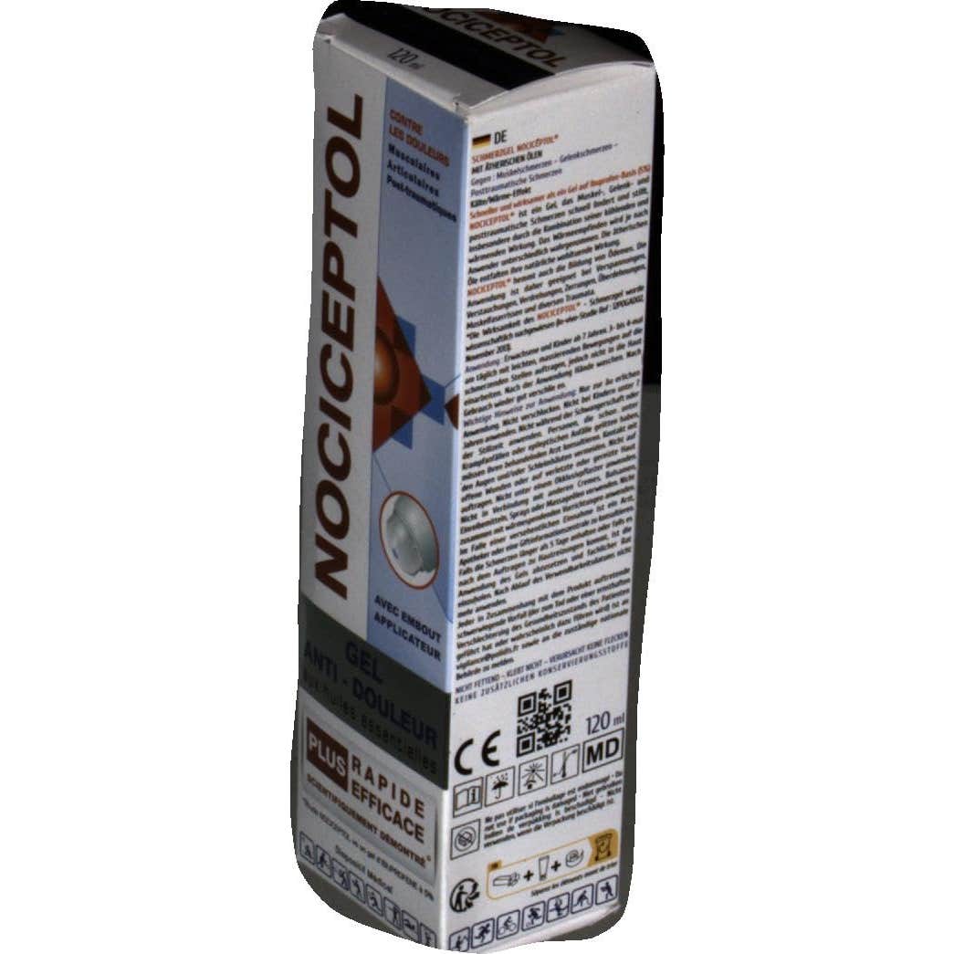 Nociceptol Gel Antidolor con Aceites Esenciales 120ml es un gel que alivia los dolores musculares, articulares y postraumáticos gracias a su efecto frío-calor. Su fórmula a base de mentol, alcanfor, aceites esenciales (tomillo, cajeput, romero, menta piperita), extractos de arcilla verde, harpagofito y cola de caballo, ayuda a calmar y aliviar el dolor. Su textura no grasa no mancha ni se pega, por lo que es ideal para contracturas, torceduras, esguinces, hematomas, distensiones y diversos tipos de traumatismos a partir de los 7 años. Formulado sin conservantes.