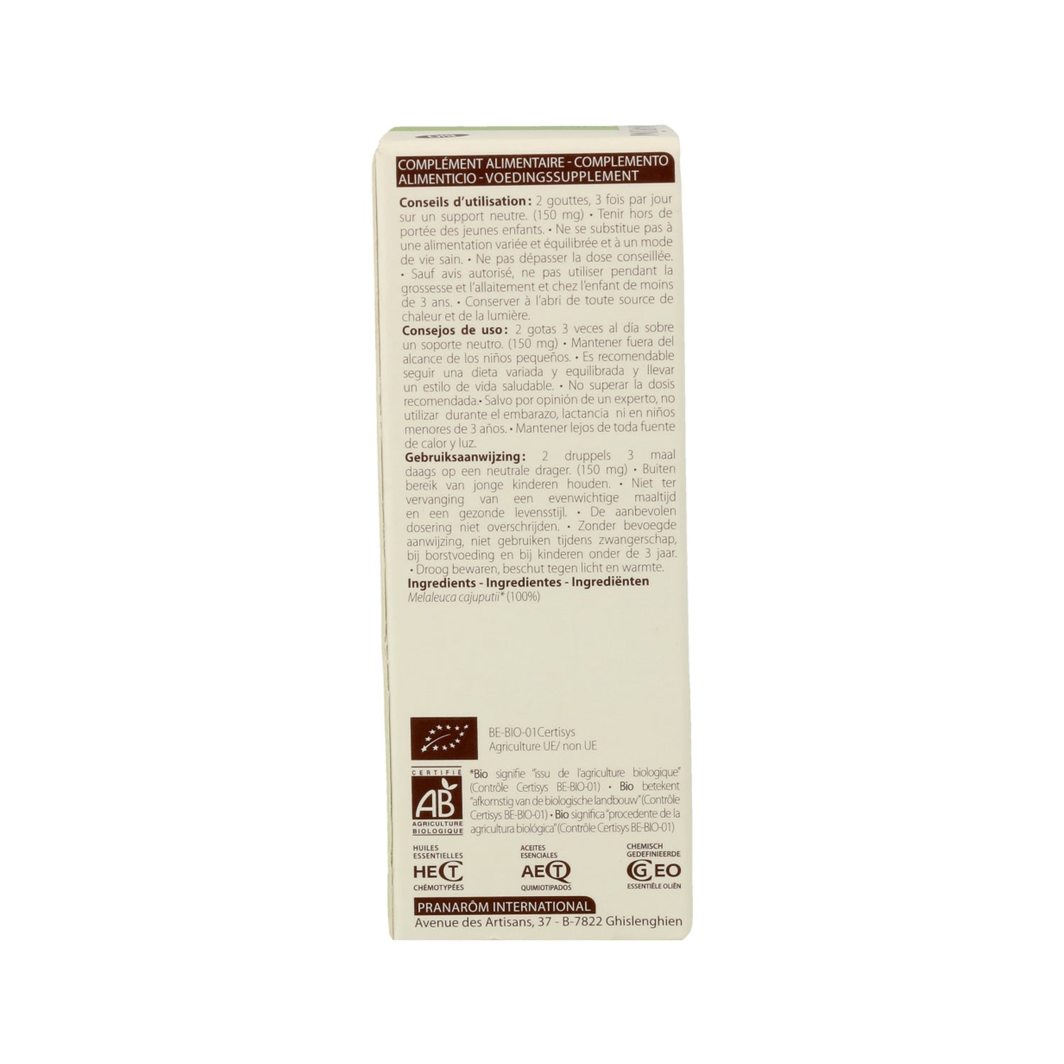 Pranarôm Aceite Esencial de Cajeput BIO 10ml es un aceite esencial 100% puro, procedente de la agricultura ecológica, extraído de las hojas de Cajeput.