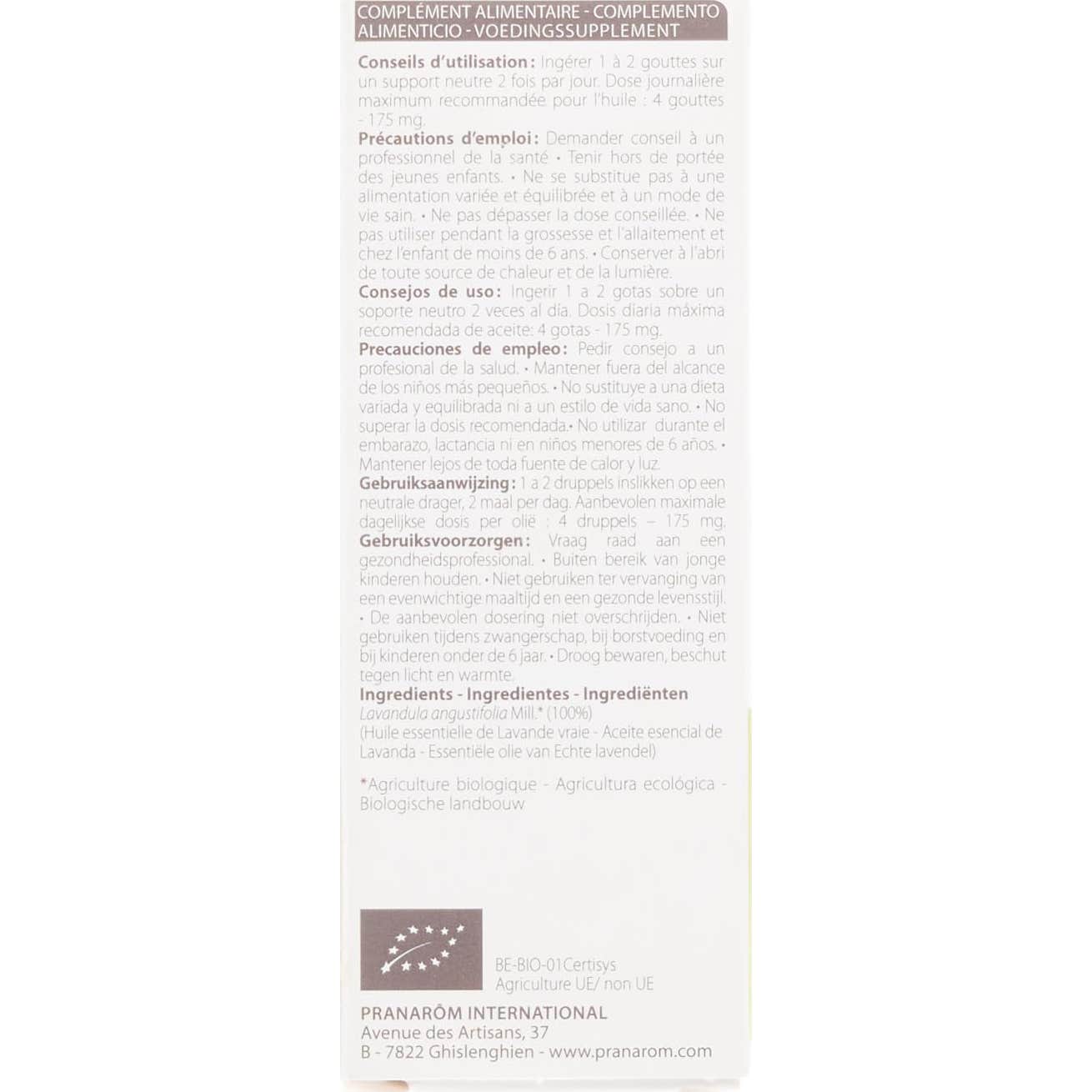 Pranarôm Aceite Esencial de Lavanda BIO 10ml es un aceite esencial que actúa como coadyuvante para relajar el organismo e inducir al sueño.