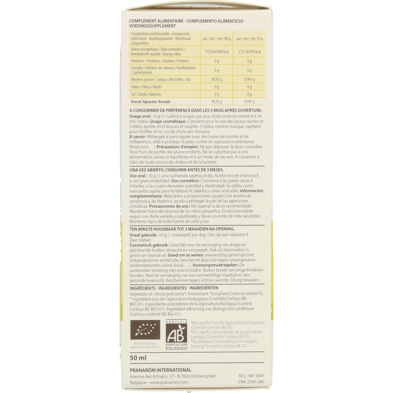 Pranarôm Aceite Vegetal de Aguacate BIO 50ml es un aceite vegetal que posee propiedades hidratantes que lo convierten en el aliado perfecto para las pieles más secas.