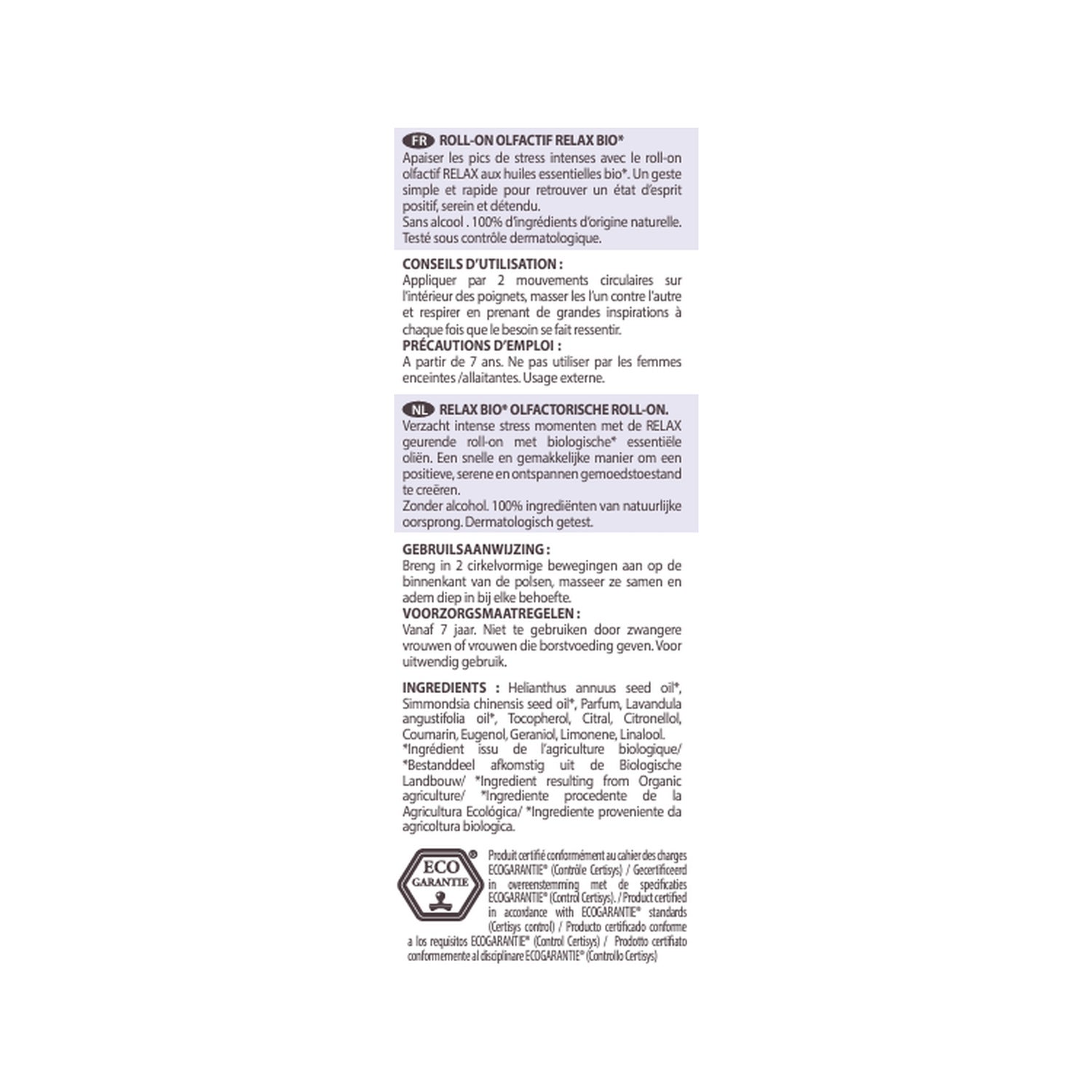 Este producto está indicado para calmar los picos de estrés intensos. Está recomendado para personas a partir de 7 años y no debe ser utilizado en mujeres embarazadas o lactantes.