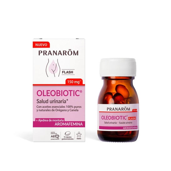 Pranarom Aromafemina Oleobiotic Salud Urinaria Flash es un producto diseñado para apoyar el bienestar de las vías urinarias. Este suplemento se presenta en forma de cápsulas y contiene una combinación sinérgica de aceites esenciales de: