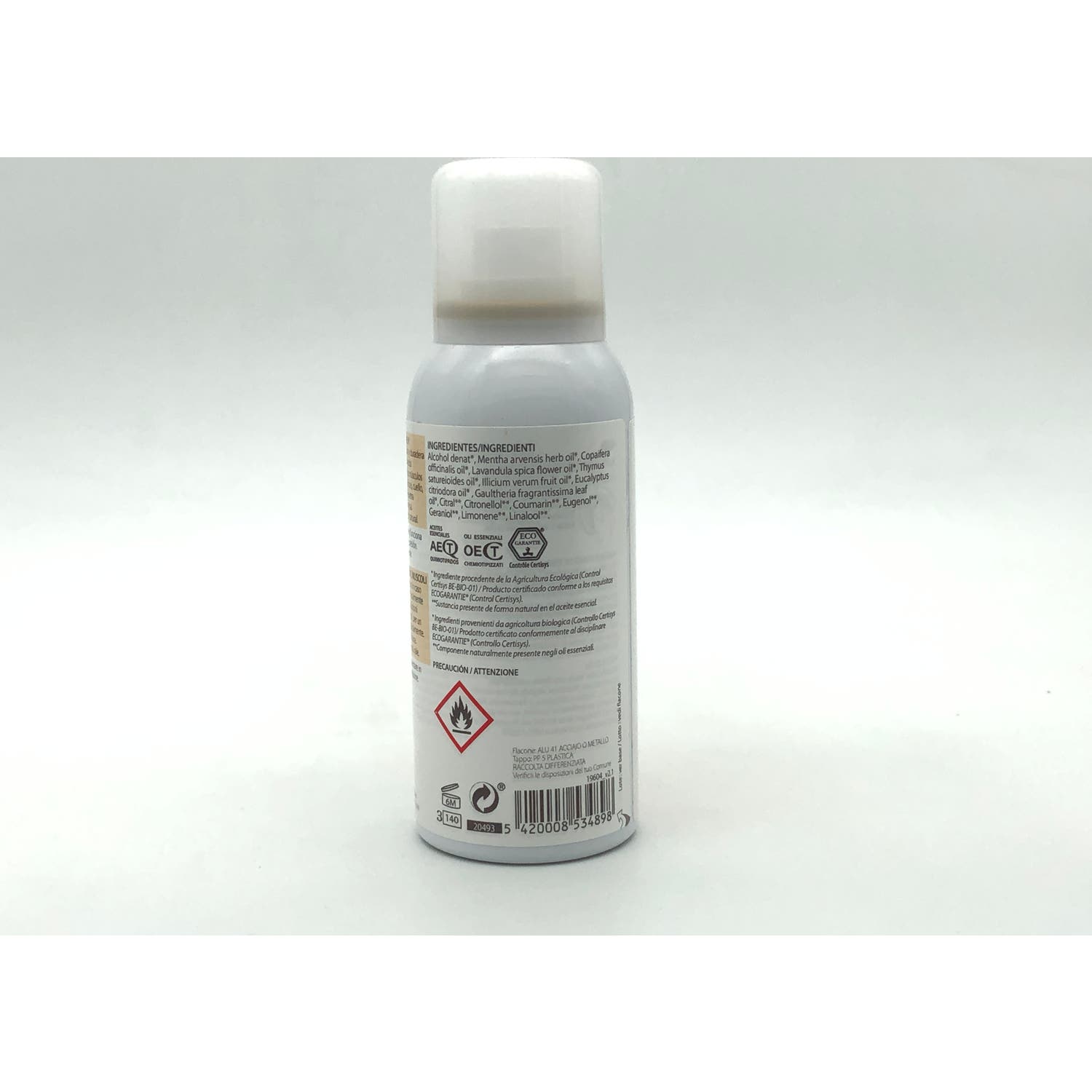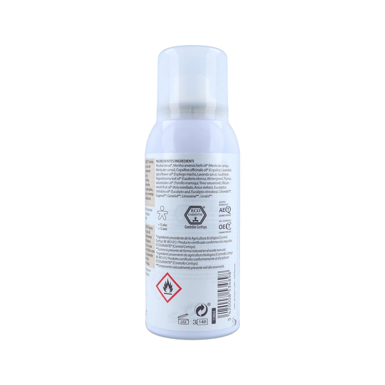 ALCOHOL DENAT, MENTHA ARVENSIS HERB OIL (MENTHE DES CHAMPS), COPAIFERA OFFICINALIS OIL (COPAÏBA), LAVANDULA SPICA FLOWER OIL (LAVANDE ASPIC), GAULTHERIA FRAGRANTISSIMA LEAF OIL (GAULTHÉRIE ODORANTE), THYMUS SATURELOIDES OIL (THYM À FEUILLES DE SARRIETTE), ILLICIUM VERUM FRUIT OIL (ANIS ÉTOILÉ), EUCALYPTUS CITRIODORA OIL (EUCALYPTUS CITRONNÉ), CITRONELLOL, EUGENOL, GERANIOL, LIMONENE, LINALOOL.
