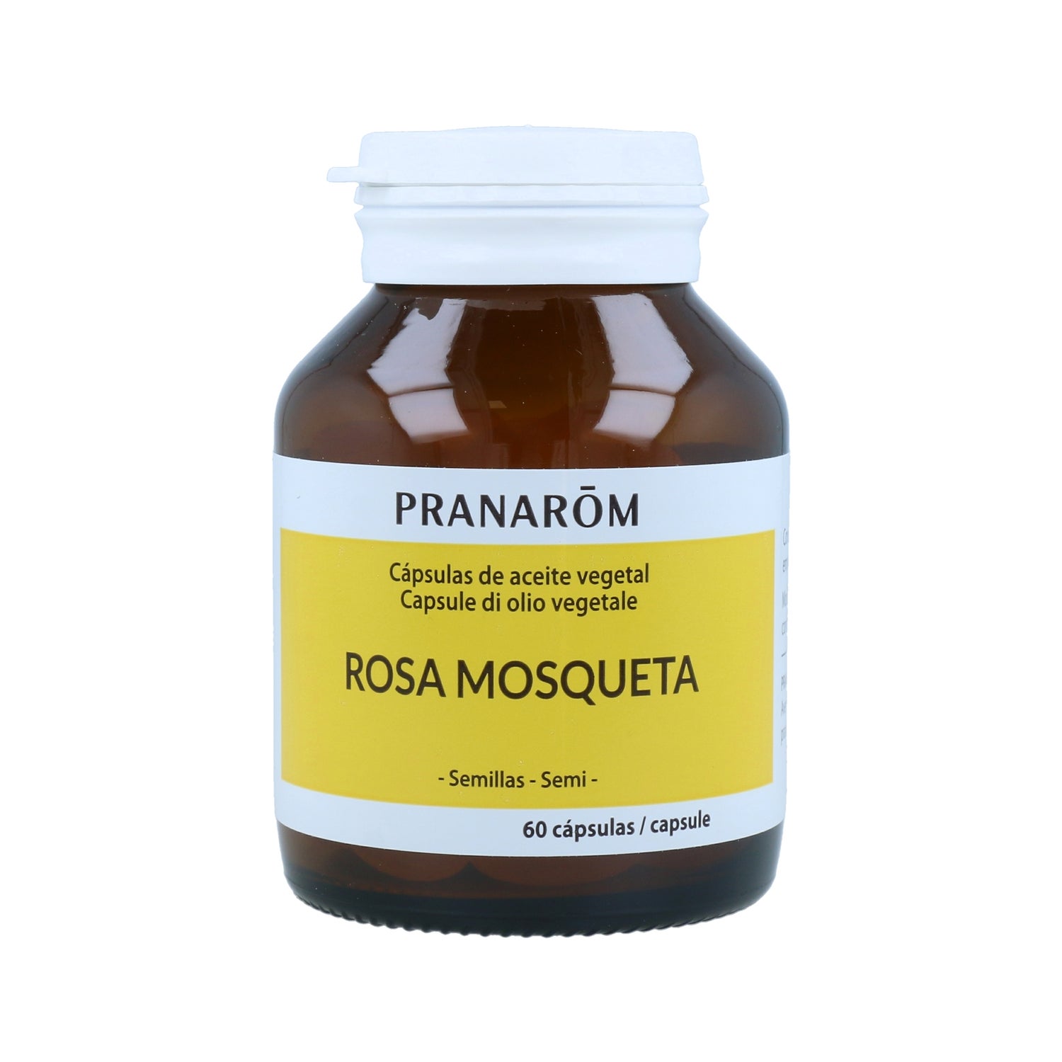 Pranarôm Cápsulas de Aceite Vegetal Rosa Mosqueta 60caps es un complemento alimenticio vegano a base de aceite 100% puro, natural y orgánico, procedente de la primera presión en frío de las semillas de rosa mosqueta.