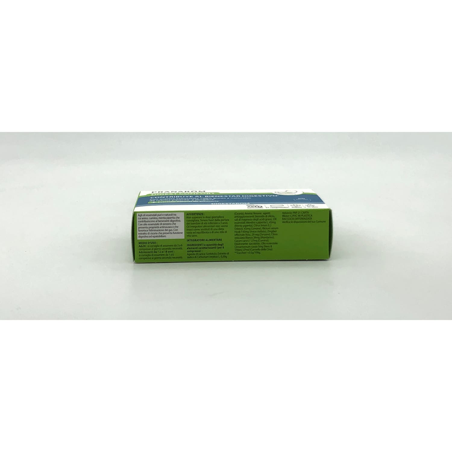 Composición para 6 comprimidos: Agente de Carga: Sorbitol, Extracto de Cichorium Intybus 0,30 G (Achicoria), Aroma: Limón, Antiaglomerantes: Dióxido de Sílice, Sales Magnésicas de Ácidos Grasos, Aceites Esenciales: Mentha X Piperita 45mg (Menta Piperita), Citrus Limonum 45mg (Limón), Illicium Verum 45mg (Anís Estrellado), Zingiber Ocinale 29mg (Jengibre), Citrus Reticulata 29mg (Mandarina), Carum Carvi 27mg (Alcaravea), Edulcorante: Sucralosa, Aceite Esencial Cinnamomum Cassia 5mg (Canela China).