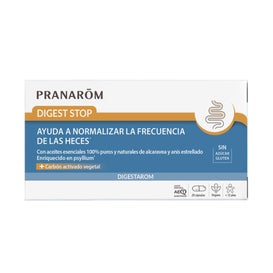 Complemento alimenticio que ayuda a normalizar la frecuencia de las heces. Está compuesto de aceites esenciales de alcaravea y anís estrellado y enriquecido con psyllium y carbón vegetal activado. Contribuye al confort intestinal y a normalizar la frecuencia de las deposiciones con una acción 2 en 1: ayuda a controlar de forma natural los problemas de heces blandas o líquidas y a regularizar su frecuencia.