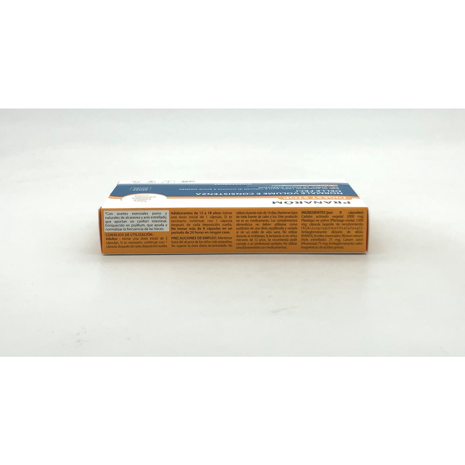 Complemento alimenticio que ayuda a normalizar la frecuencia de las heces. Está compuesto de aceites esenciales de alcaravea y anís estrellado, y enriquecido con psyllium y carbón vegetal activado.