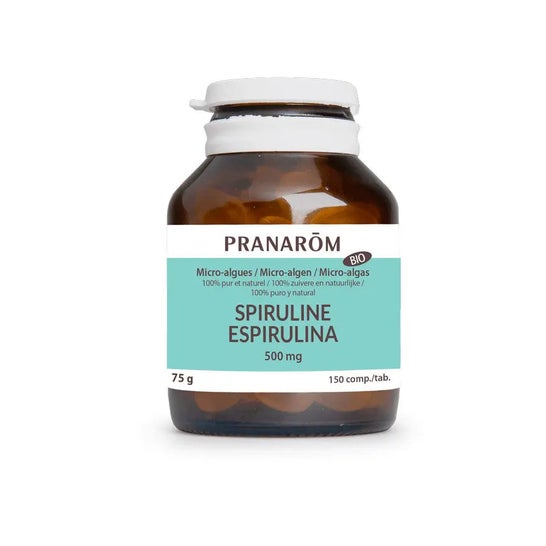 Pranarôm Espirulina 500mg BIO 150comp es un complemento alimenticio ecológico 100% puro y natural a base de Espirulina, micro-algas ricas en proteínas, minerales y aminoácidos esenciales.