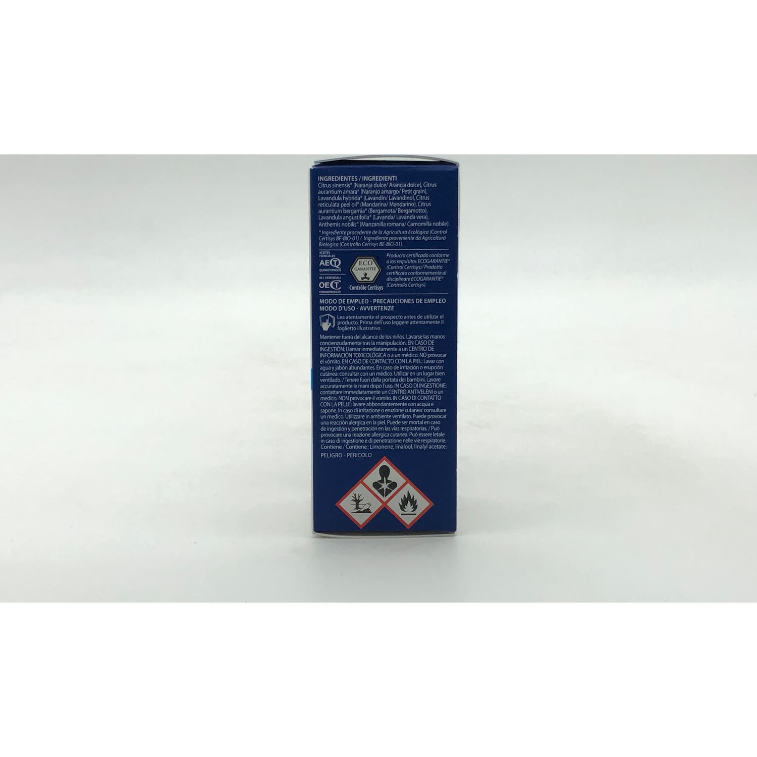 Advertencias de uso: disponer el difusor de manera que se evite el contacto directo con la cara o los ojos. No difundir en la habitación de niños de menos de 2 años. Difundir en ausencia de personas sensibles (mujeres embarazadas, bebés y personas asmáticas o que hayan sufrido convulsiones) o de animales sensibles.