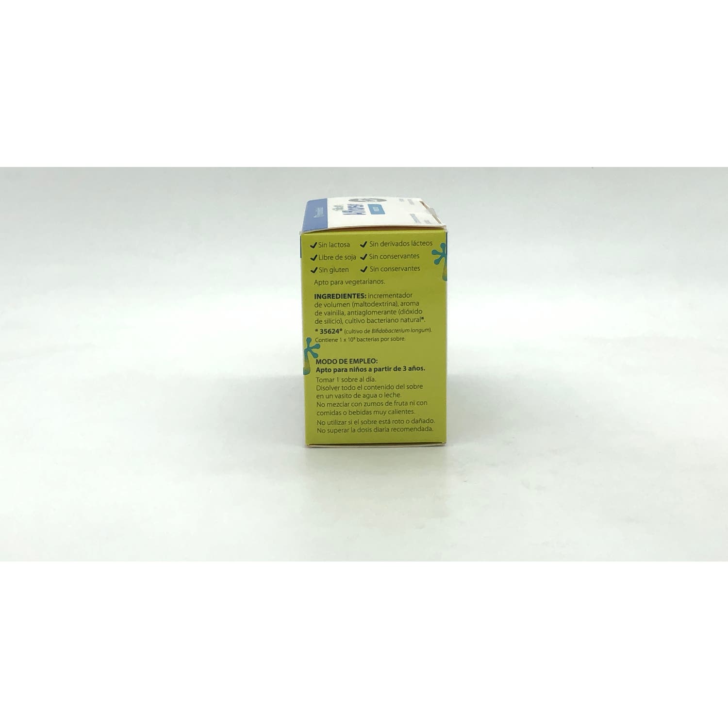 Contiene la cepa exclusiva 35624® de Bifidobacterium longum, que ayuda a reducir los síntomas del síndrome del intestino irritable y otros trastornos funcionales digestivos asociados a dolor abdominal no especificado en niños y adolescentes. Actúa frente a los microorganismos patógenos, mediante su adhesión a la pared intestinal, y contribuye a mantener el equilibrio de la microbiota intestinal.