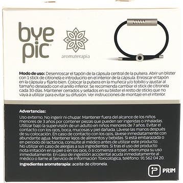 Prim Byepic Pulsera Aromática Citron es una solución eficiente y natural para mantener a raya a los mosquitos. Esta pulsera, de color negro, está fabricada en silicona flexible y es resistente al agua, lo que la convierte en una opción ideal para disfrutar de actividades al aire libre.