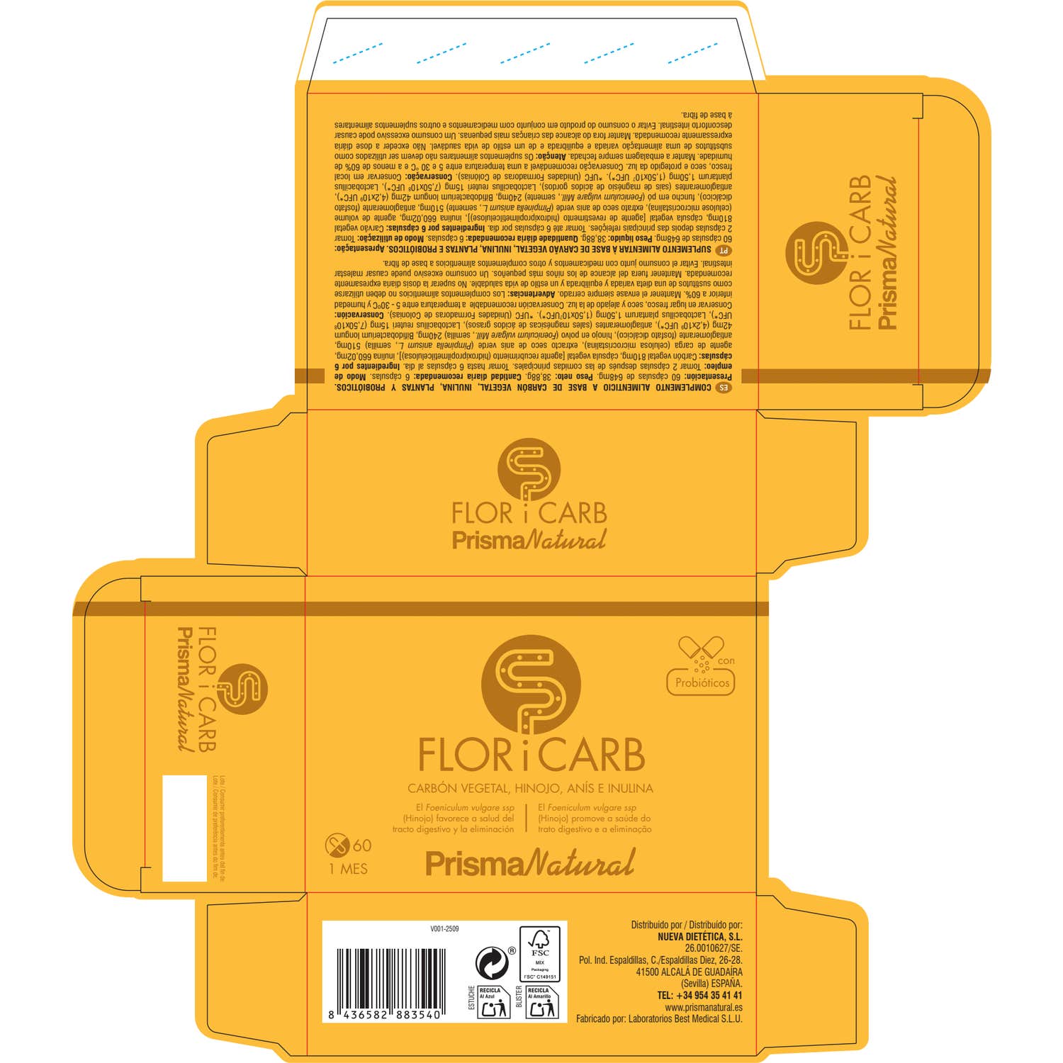 Prisma Natural Flor i Carb es un complemento alimenticio preprobiótico que combina: