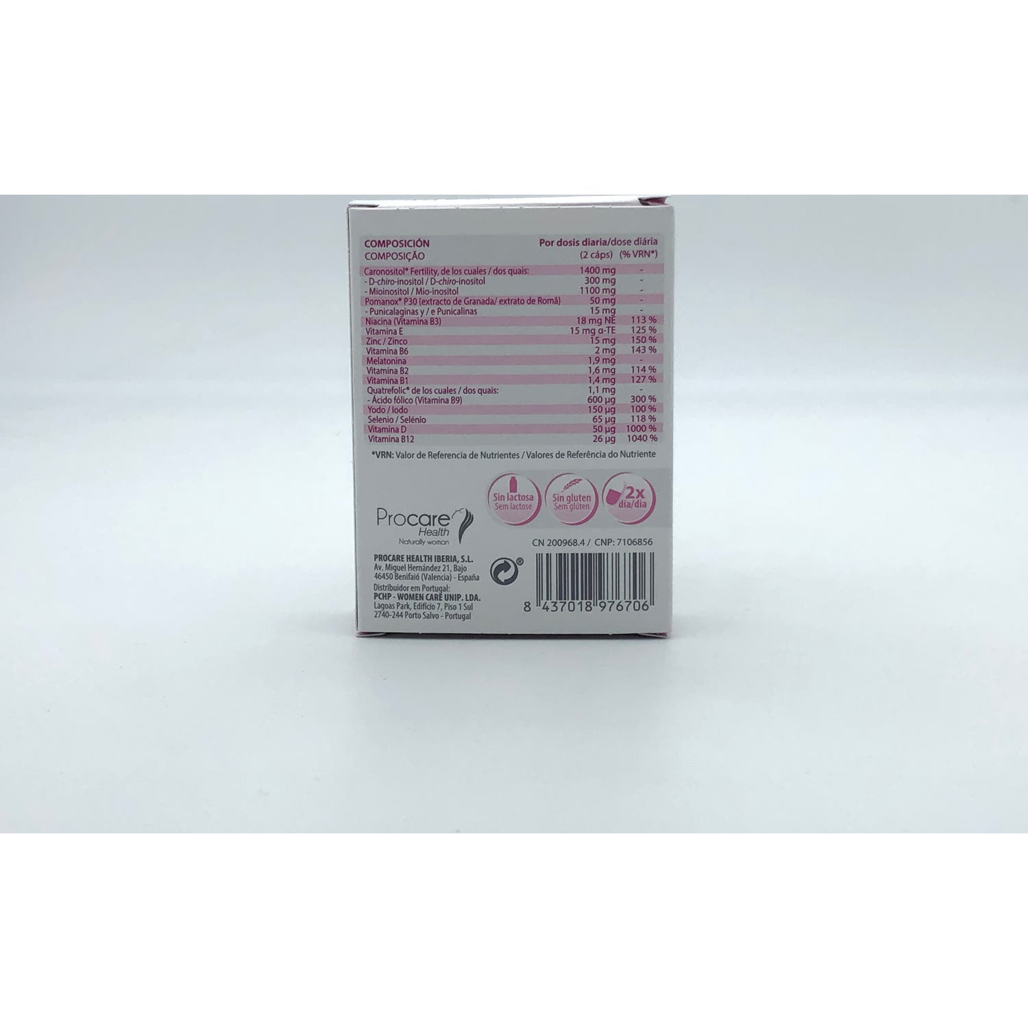 Complemento alimenticio en formato cápsula, desarrollado para ayudar a cubrir las necesidades diarias de nutrientes en mujeres en edad fértil.