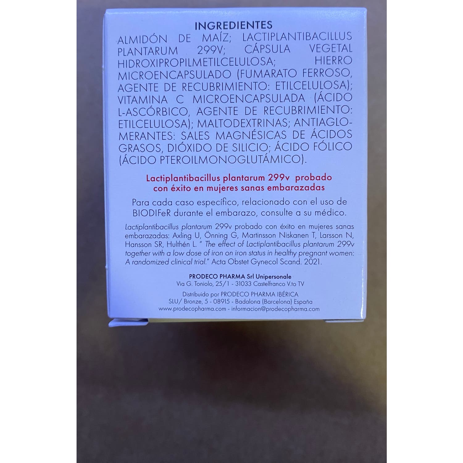 Almidón de Maíz; Lactobacillus Plantarum 299v; Cápsula Vegetal Hidroxipropilmetilcelulosa; Hierro Microencapsulado (Fumarato Ferroso, Agente De Recubrimiento: Etilcelulosa); Vitamina C Microencapsulada (Ácido L-Ascórbico, Agente De Recubrimiento: Etilcelulosa); Maltodextrinas; Antiaglomerantes: Sales Magnésicas De Ácidos Grasos, Dióxido De Silicio; Ácido Fólico (Ácido Pteroilmonoglutámico).