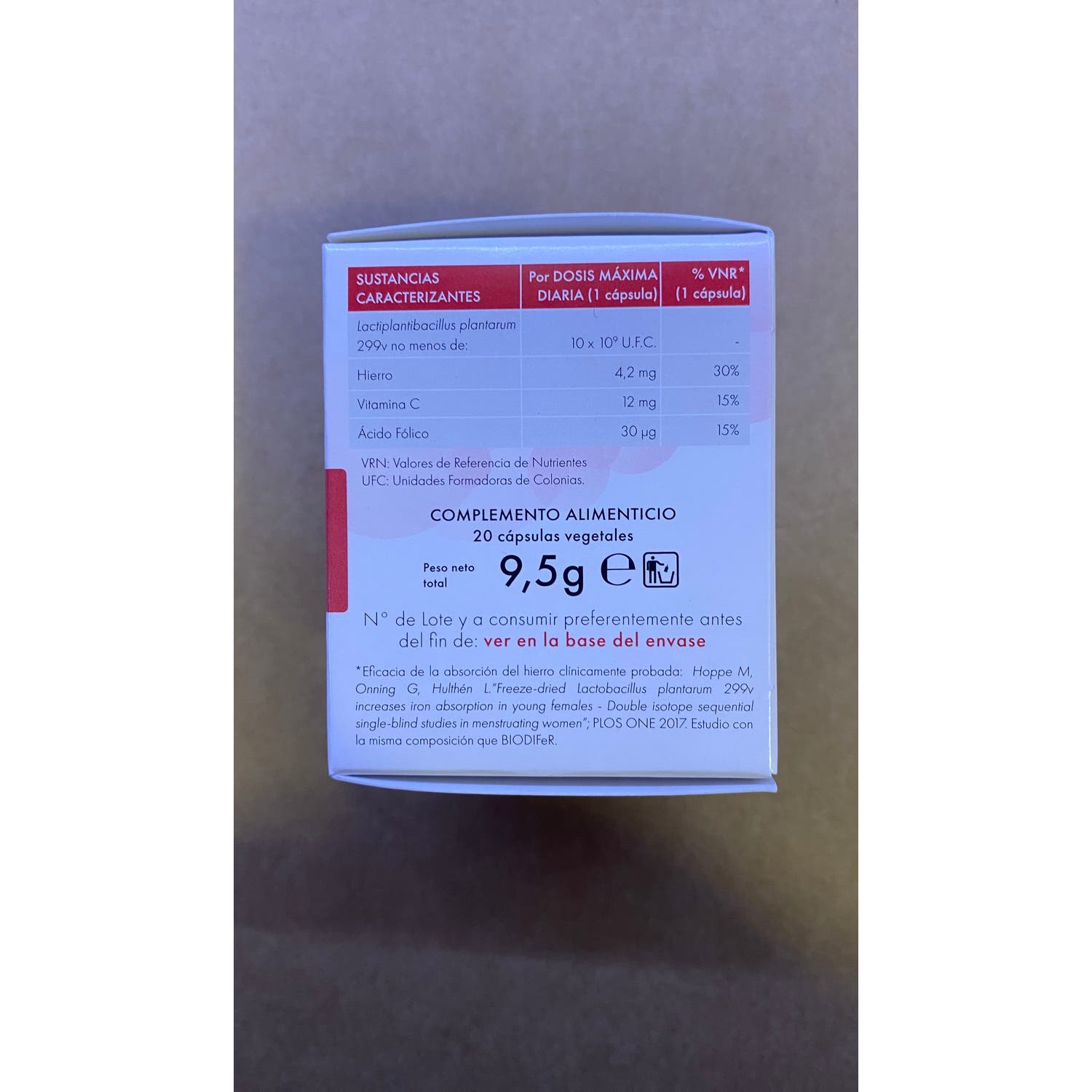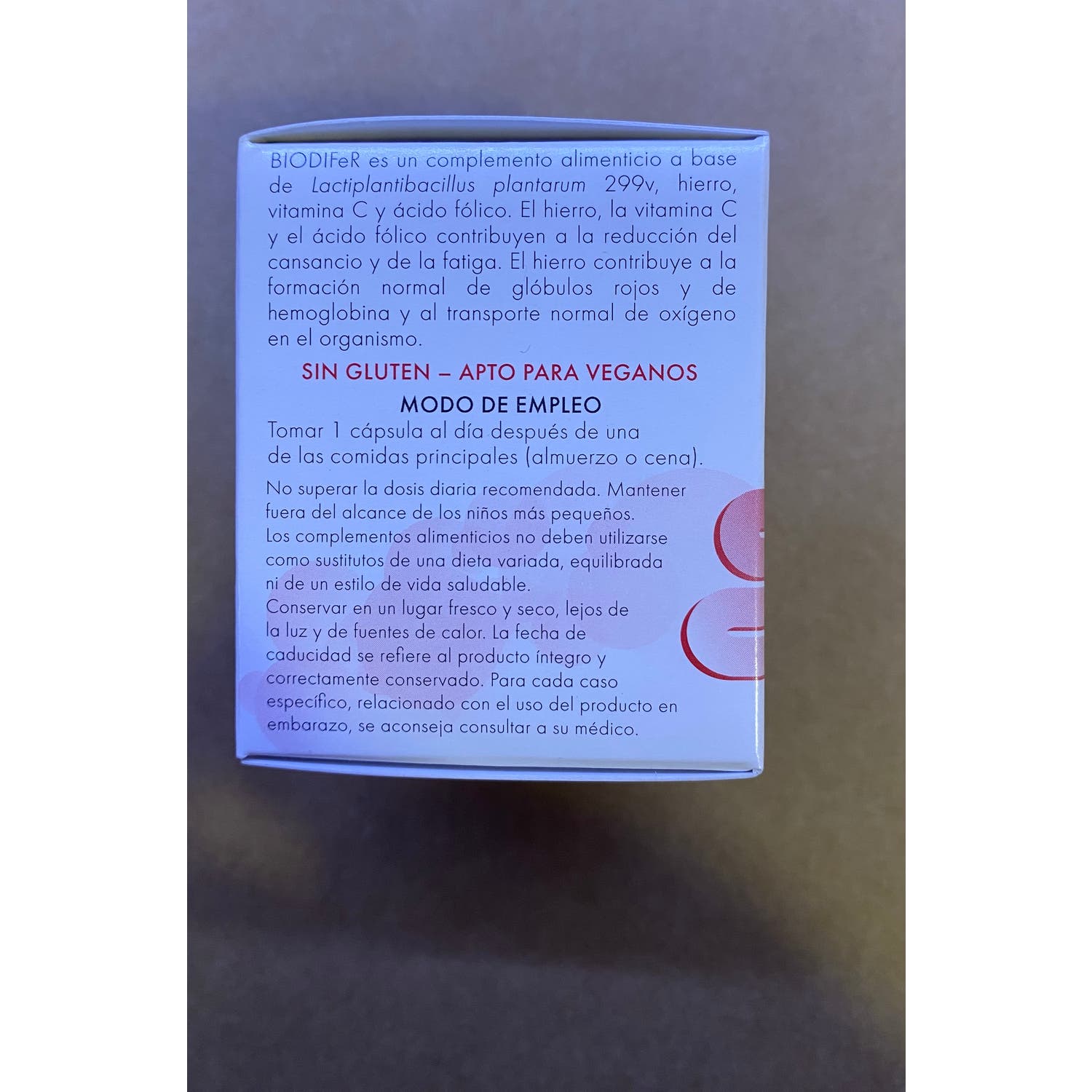 Complemento alimenticio formulado a base de lactobacilos, hierro y vitamina C. Se trata de cápsulas vegetales libres de gluten.