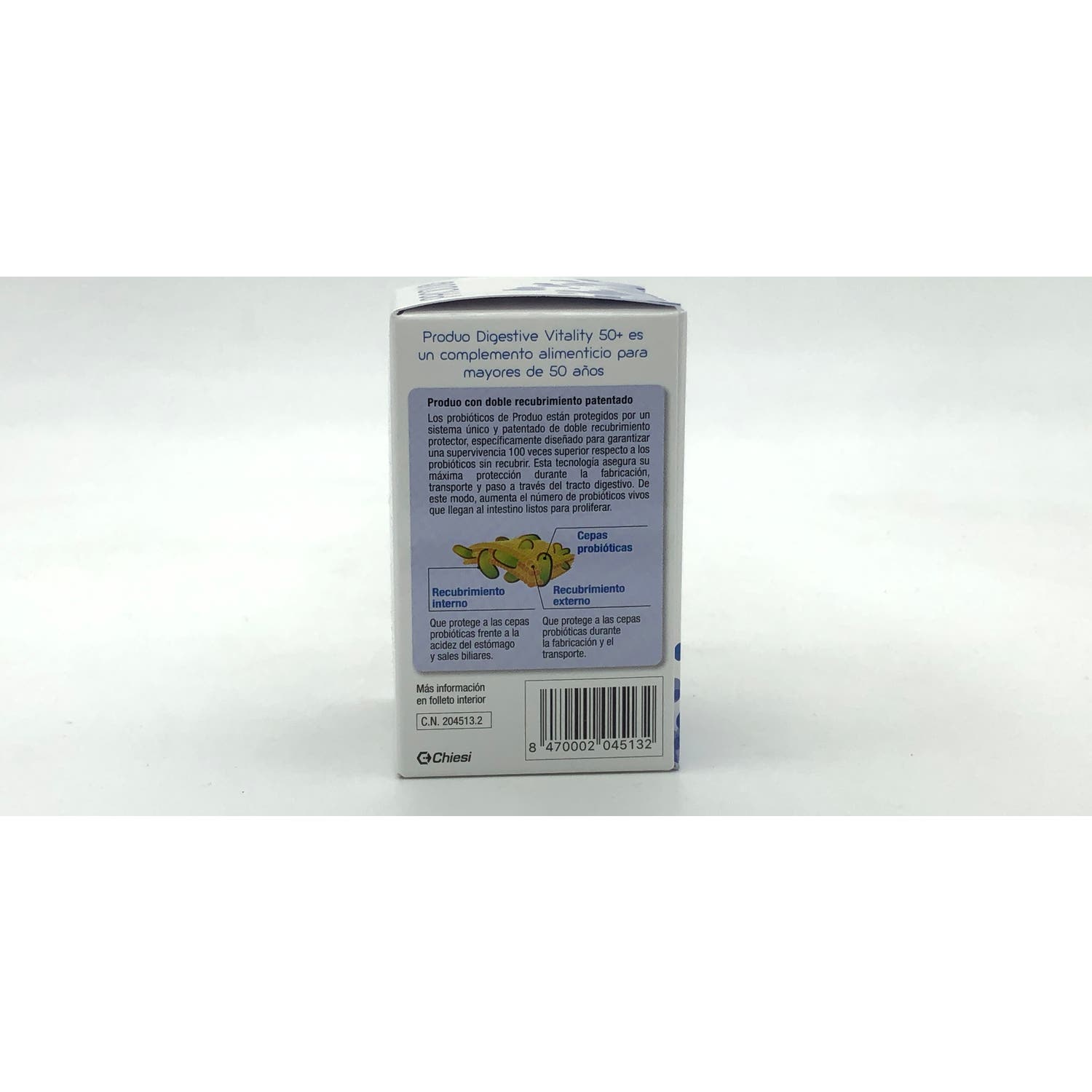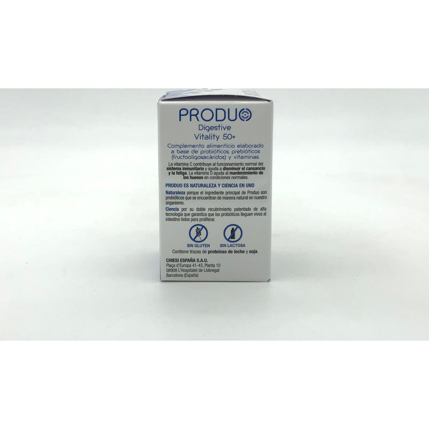 Produo® Digestive Vitality 50+ 30caps es un complemento alimenticio elaborado a base de vitaminas y probióticos que ayuda a estimular el funcionamiento del sistema inmune y a reducir la fatiga y el cansancio.