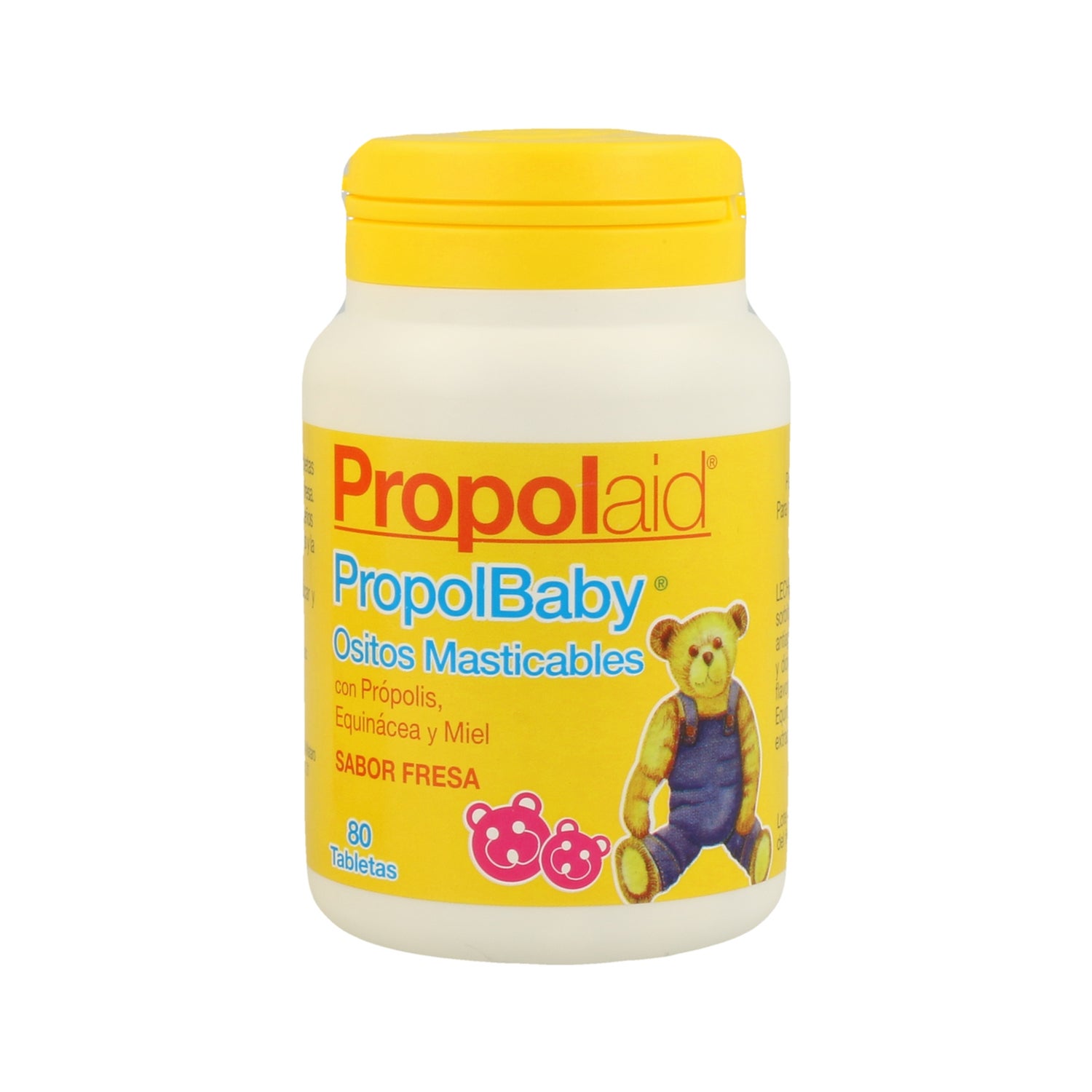 Propolaid PropolBaby son unos ositos masticables con sabor a fresa ricos en equinácea y miel. Estos ositos monísimos serán la delicia de tus hijos y fortalecerán sus defensas cuando llegue el frío y el mal tiempo. No contienen conservantes ni colorantes.