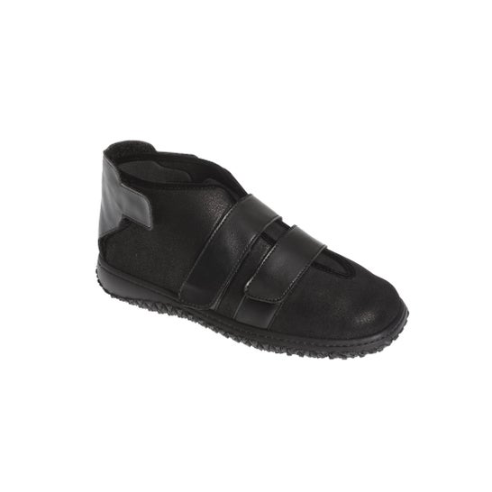 Atractiva y cómoda zapatilla Pulman en color negro de la talla 40 para uso médico y de confort que cuenta con una plantilla removible y pestañas de velcro. Tiene una gran apertura y contrafuerte trasero para que se ajusten mucho mejor a ti.