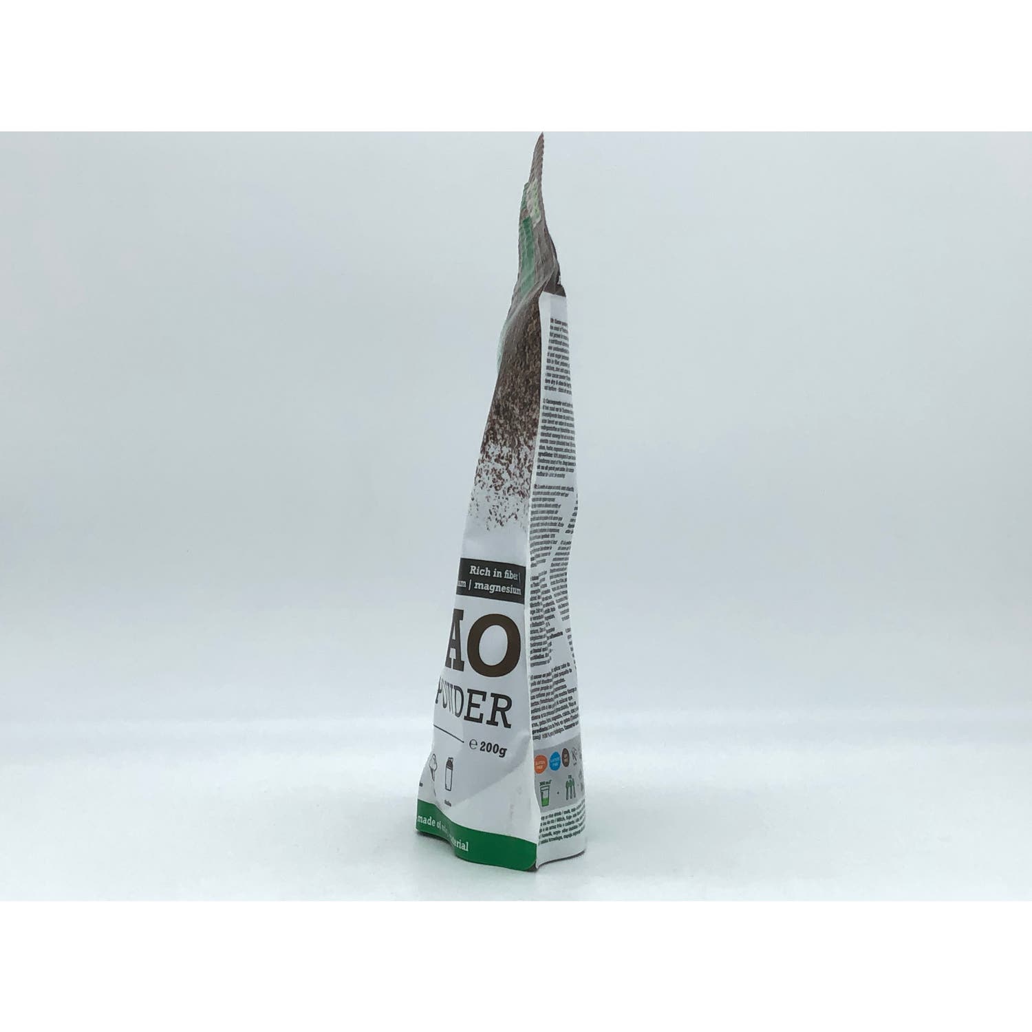 Elaborado a base de cacao extraído sin calentar de la semilla del Theobroma cacao con propiedades nutrientes y fitonutrientes. Además de fibra, potasio, fósforo, magnesio, calcio, cinc y cobre. No contiene alérgenos, gluten, lactosa ni soja. Certificado como orgánico, vegano y kosher.