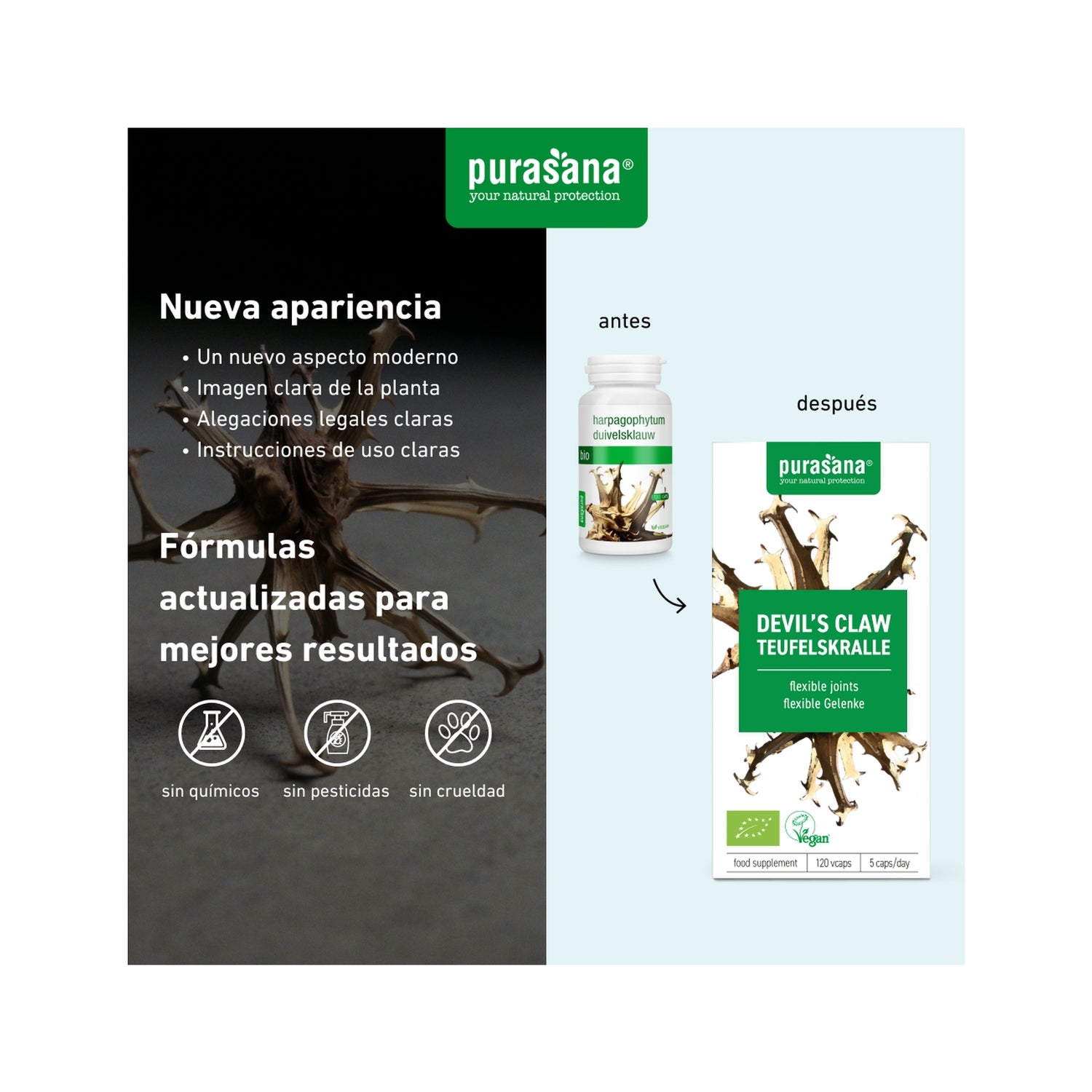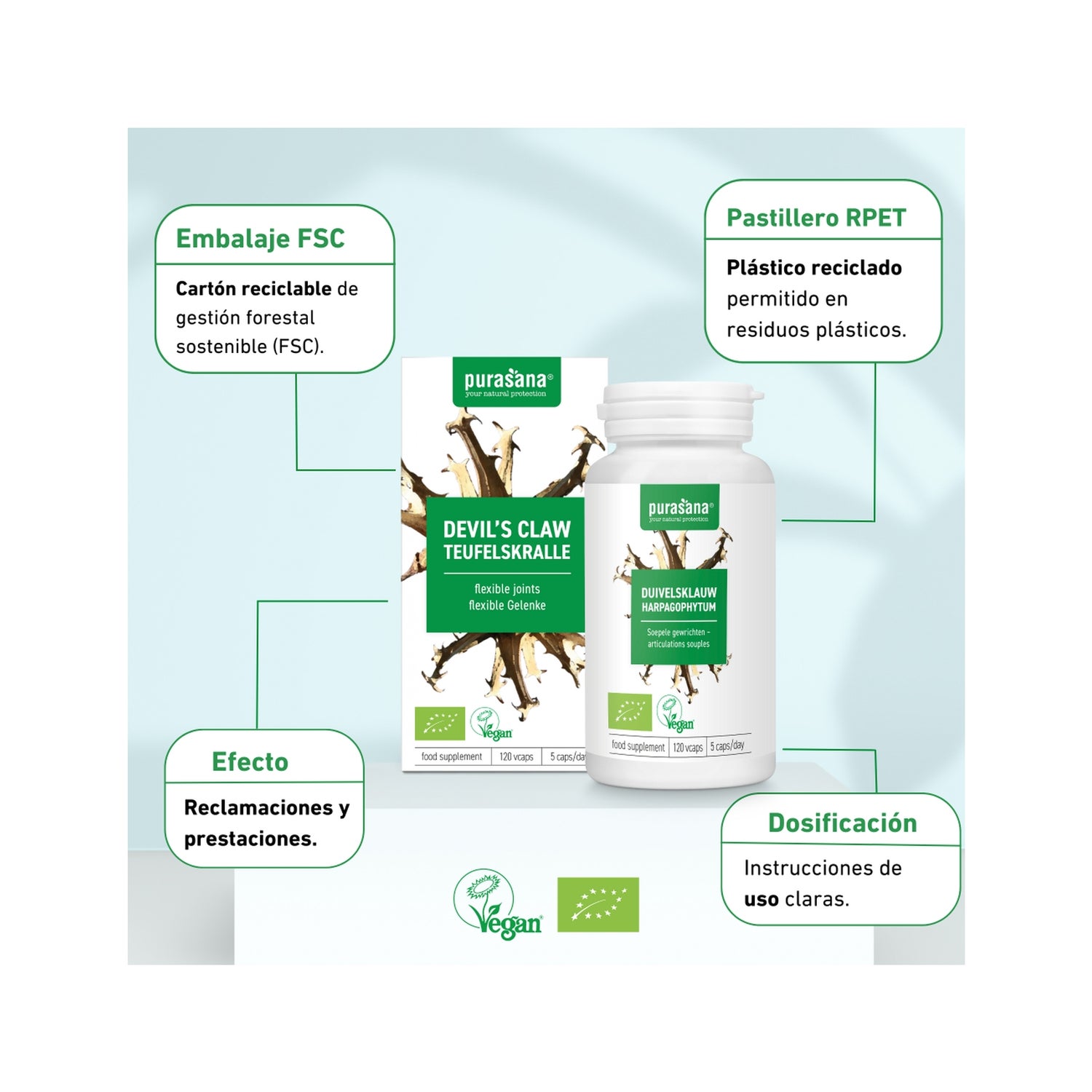 Purasana - Harpagophytum 120caps es un complemento alimenticio que ayuda a la flexibilidad y la movilidad de las articulaciones, además de apoyar la digestión.