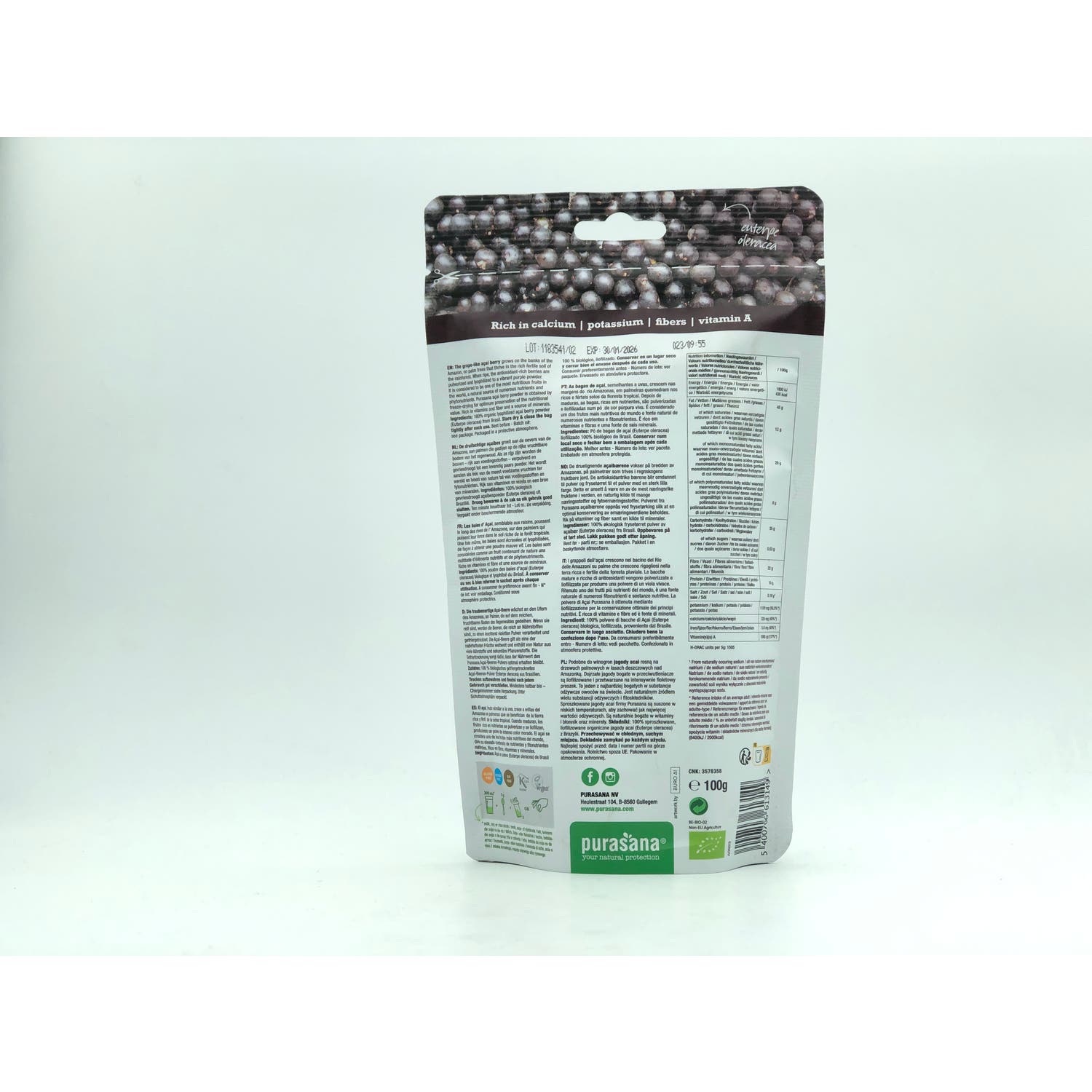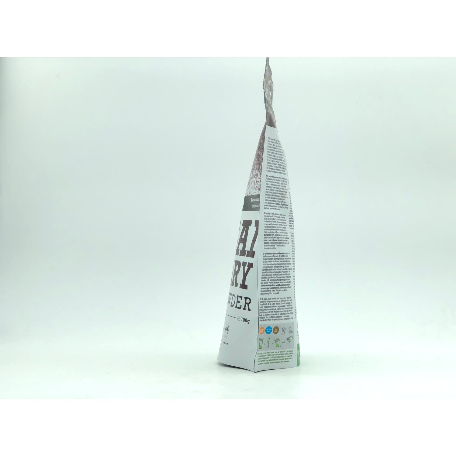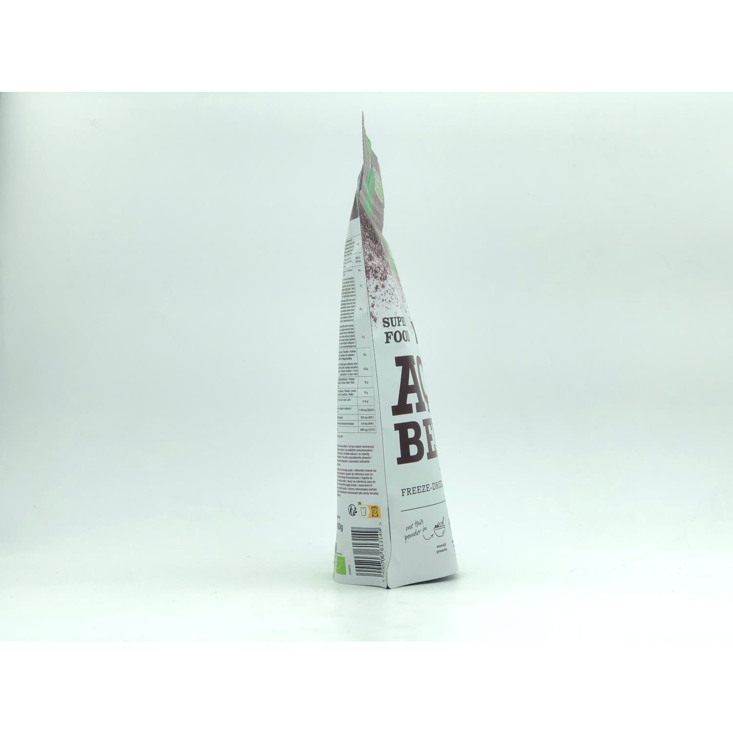 Formulado a base de polvo de bayas de acaí, un fruto que crece en las orillas de la cuenca del Amazonas en Brasil y a la que se considera una de las frutas más nutritivas del mundo, que aporta vitamina A, potasio, calcio y hierro y propiedades antioxidantes, saciantes y digestivas, que se conservan gracias a la liofilización.