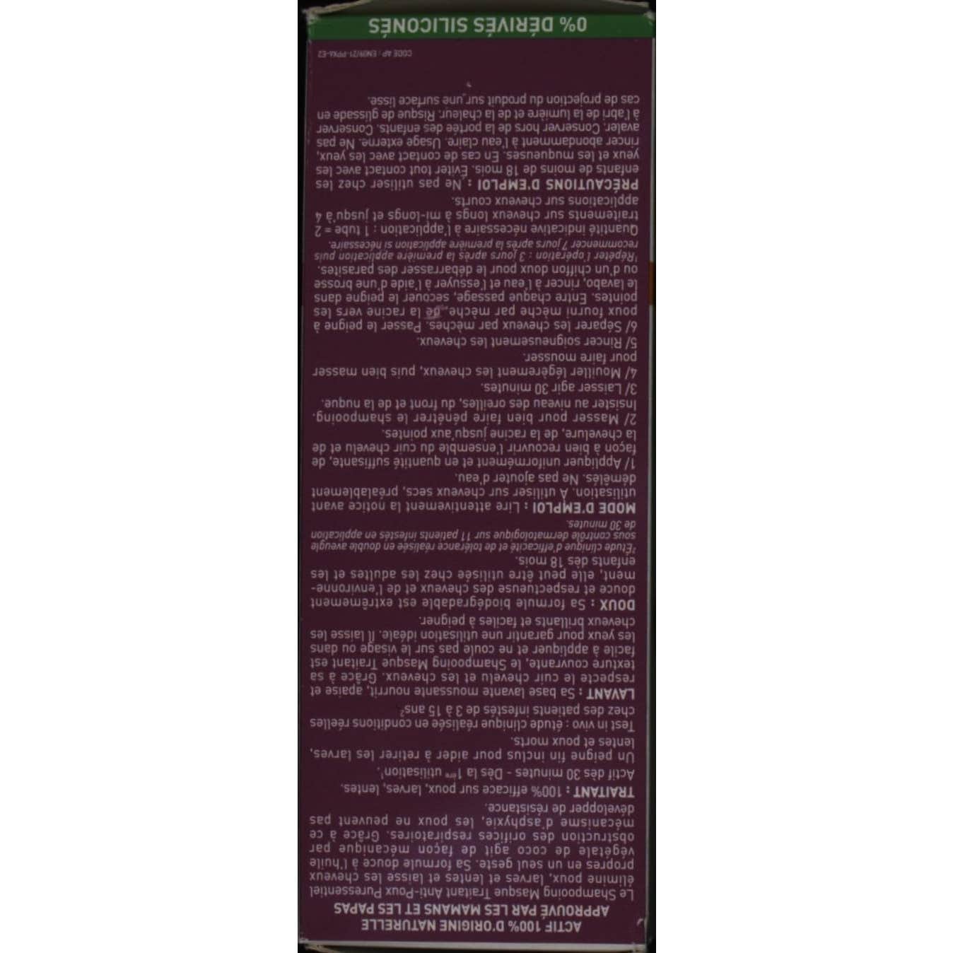 Formulado con aceite vegetal de coco que bloquea los orificios y actúa como tratamiento para eliminar piojos y larvas y una base limpiadora espumante que nutre, suaviza y respeta el cuero cabelludo.