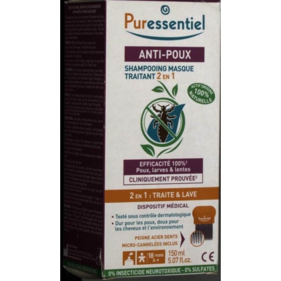 Puressentiel Anti-Lewish Shamp Trait 150Ml+Peig es un champú antipiojos que elimina piojos y larvas y deja el cabello limpio.