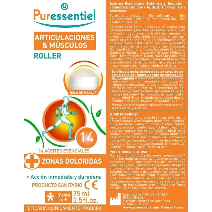 Puressentiel Roller Articulaciones y Músculos 14 Aceites Esenciales 75ml es una solución en roll-on que alivia los dolores musculares.