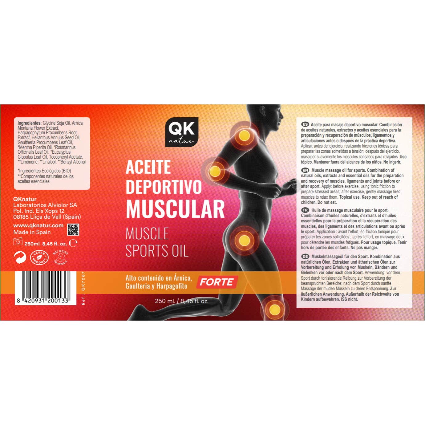 El Aceite Muscular Deportivo de QKnatur es una solución natural y eficaz diseñada para optimizar la preparación física de los músculos y ligamentos, tanto en la rutina diaria como antes y después del ejercicio. Su fórmula enriquecida con ingredientes naturales ayuda a relajar y flexibilizar las zonas musculares, facilitando un masaje suave y estimulante que mejora la circulación y reduce el riesgo de lesiones. Ideal para quienes buscan cuidar su cuerpo antes de la actividad física, o para aliviar la tensión muscular después de entrenamientos intensos, este aceite se convierte en un aliado perfecto para mantener la movilidad y el bienestar muscular.