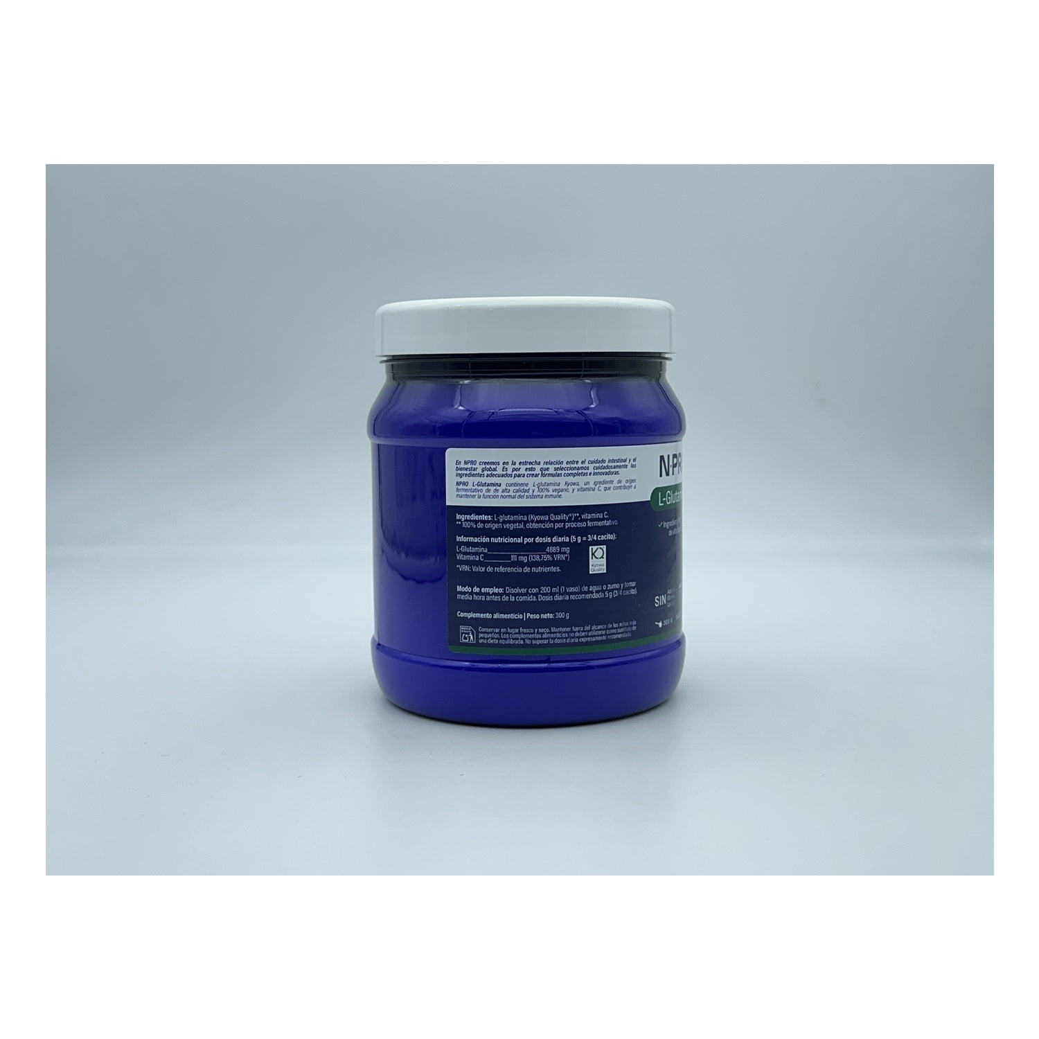Polvo elaborado a base de L-glutamina, conocida por ser un aminoácido con propiedades para frenar el estrés oxidativo de las células. Mejora la síntesis de las proteínas ingeridas a través de la alimentación, por lo que está especialmente recomendado para personas que practican ejercicio con asiduidad y buscan mejorar su rendimiento.