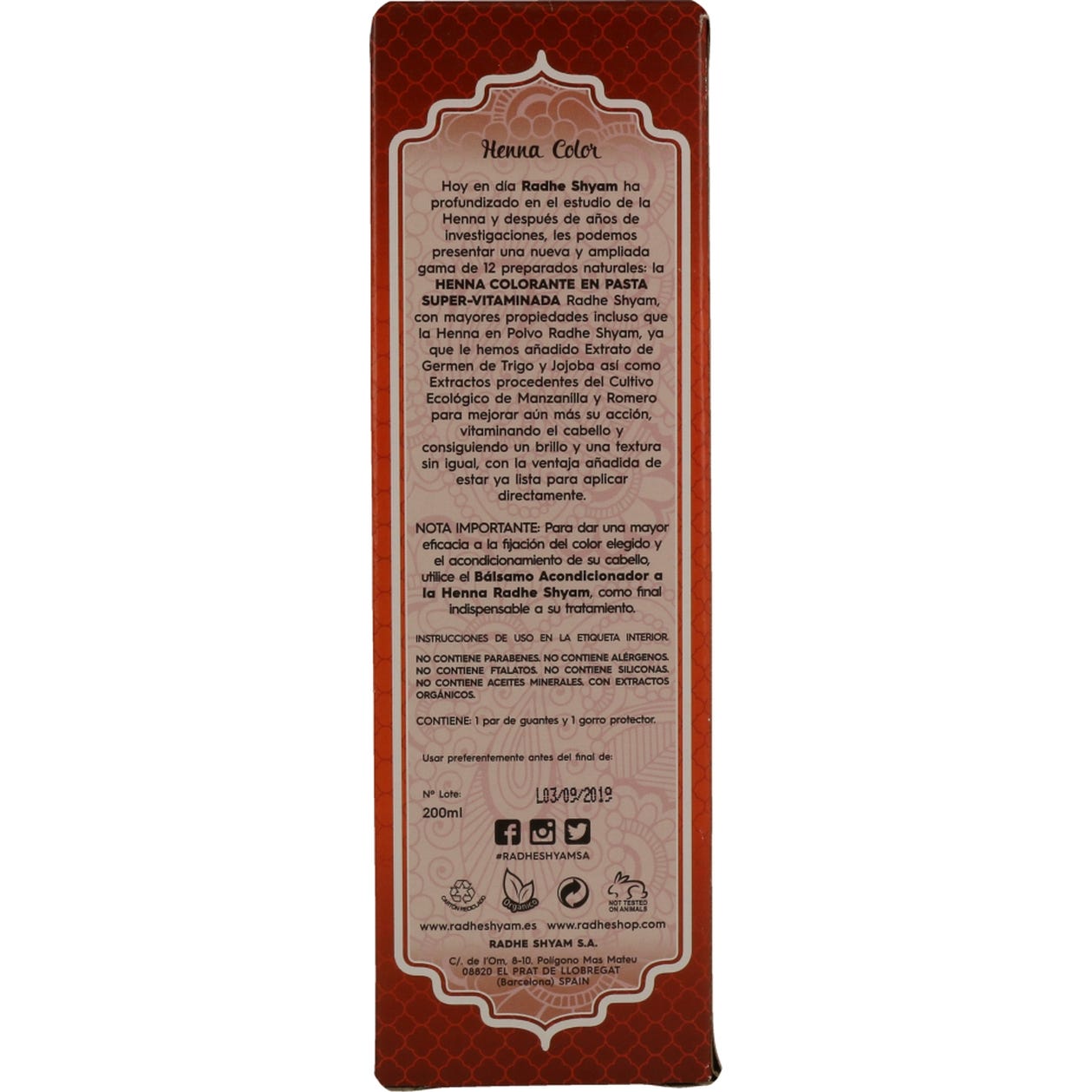Radhe Shyam Henna Pasta Cobre Natural para cabello es una opción ideal si buscas una coloración vegetal que cuide la salud del cabello. Esta pasta, lista para aplicar, está compuesta por ingredientes ecológicos y extractos de plantas como: