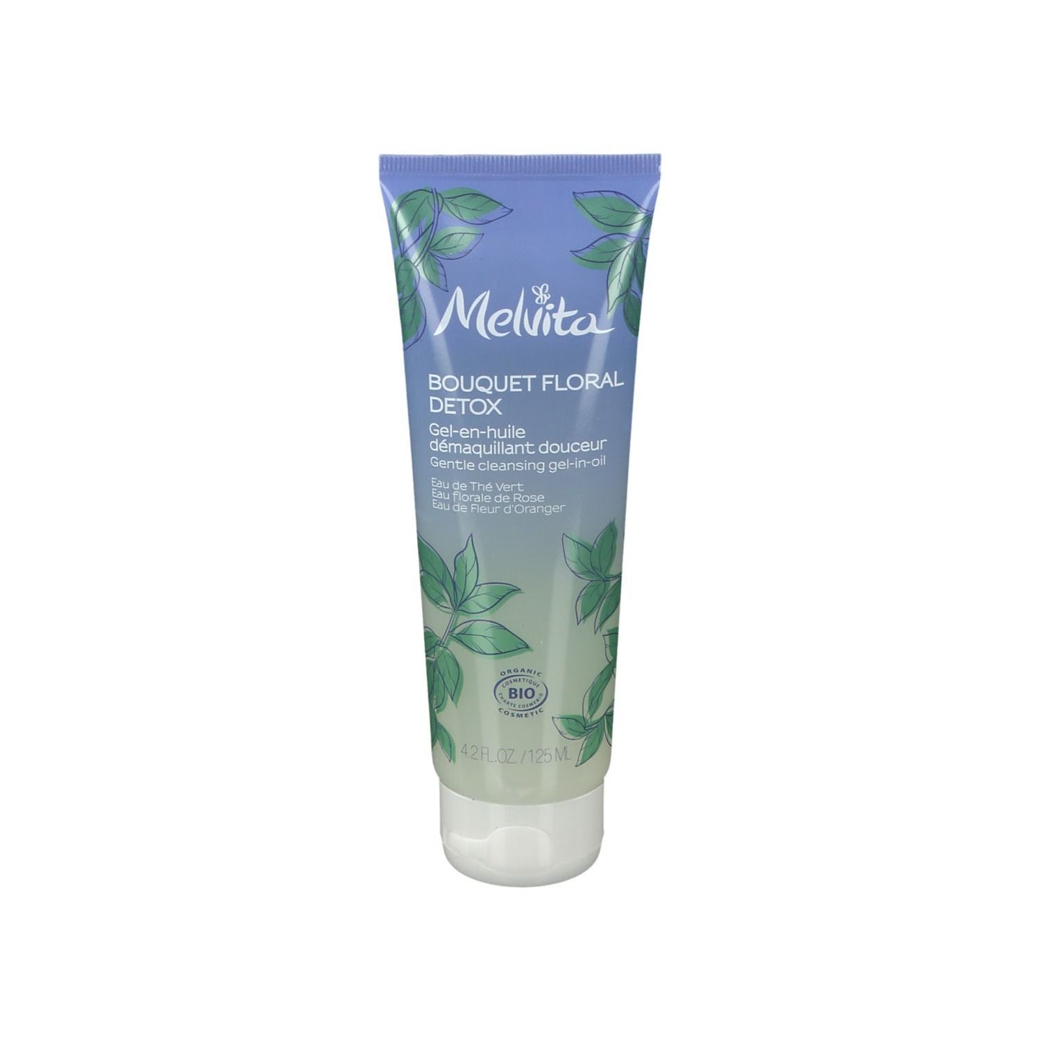 Ramo floral de Melvita Desintoxicación Suave Aceite-Gel Orgánico 125 Ml es un desmaquillante en formato gel-aceite con certificación ecológica. Su innovadora textura 3 en 1 permite: