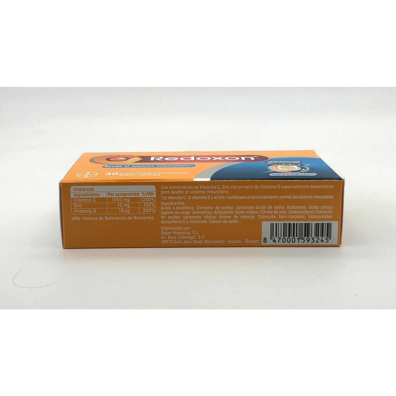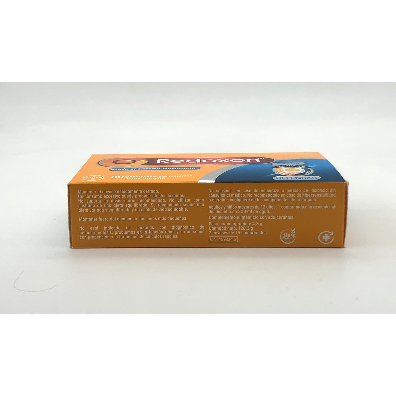 Bayer Redoxon Extra Defensas 30comp es un complemento alimenticio en forma de comprimidos efervescentes, con sabor a naranja, que ayuda al sistema inmunitario a proteger el organismo.