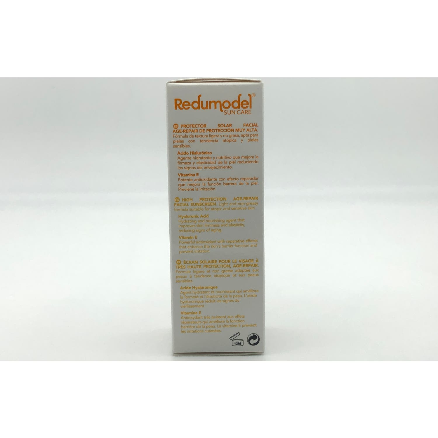 Redumodel Sun Care Protector Solar Facial SPF50+ 50ml es un protector solar facial diseñado para proporcionar una protección superior contra los daños causados por los rayos solares, al tiempo que ofrece beneficios adicionales para la salud y el aspecto de la piel. Combina una alta protección, SPF 50+, con acción age-repair, gracias al Ácido Hialurónico, y propiedades antioxidantes de la vitamina E.