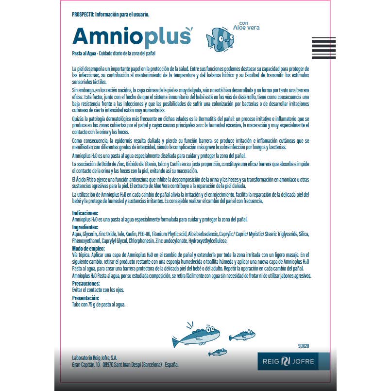 Reig Jofre Amnioplus H2O Pasta al Agua 75g es una loción que ayuda a proteger la delicada piel del bebé en la zona del pañal, especialmente vulnerable durante los primeros meses de vida.