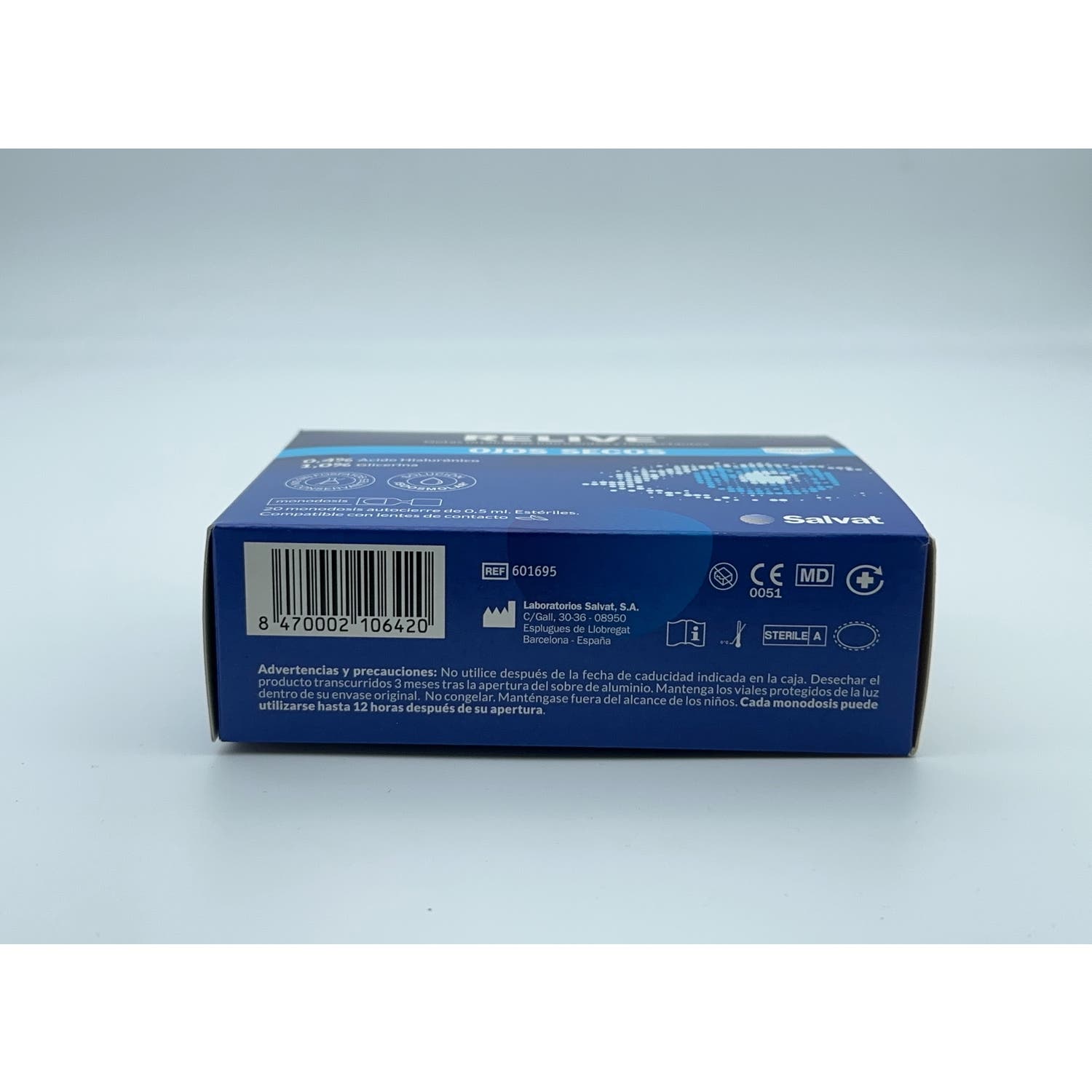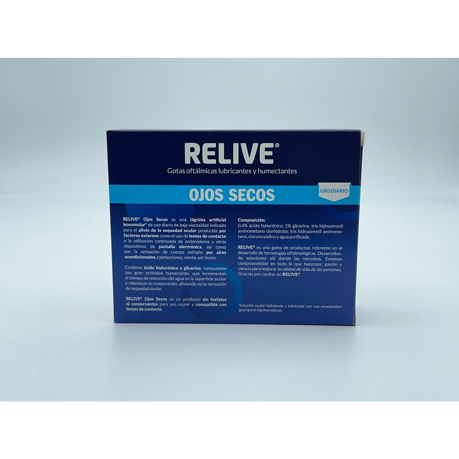 Relive Ojos Secos 20x0,5ml son unas gotas oftálmicas en formato monodosis que contribuyen a mantener la humedad ocular, ayudando a reducir la irritación. Están enriquecidas con ácido hialurónico, ingrediente humectante que contribuye a aliviar el ojo seco. Además, la glicerina ayuda a retener la humedad sobre la superficie ocular. Compatible con lentes de contacto.
