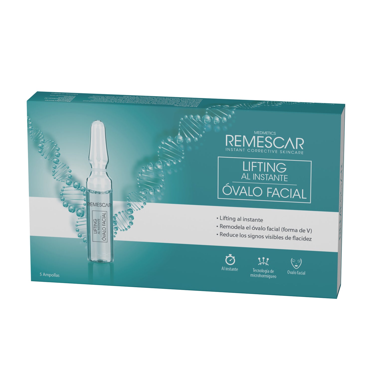 Remescar Lifting Al Instante Ovalo Facial 5amp es un pack de ampollas que ayuda a reducir los signos de flacidez del rostro. Está indicado para pieles maduras, ya que son su efecto lifting inmediato contribuye a devolver un aspecto más joven.