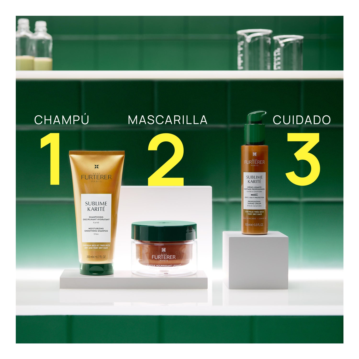 Su fórmula combina la nutrición intensa y profunda de la manteca de karité, con el efecto limpiador y protector del extracto de cimentrio, unidos con las microproteínas de trigo, favorecen la resistencia al cabello.