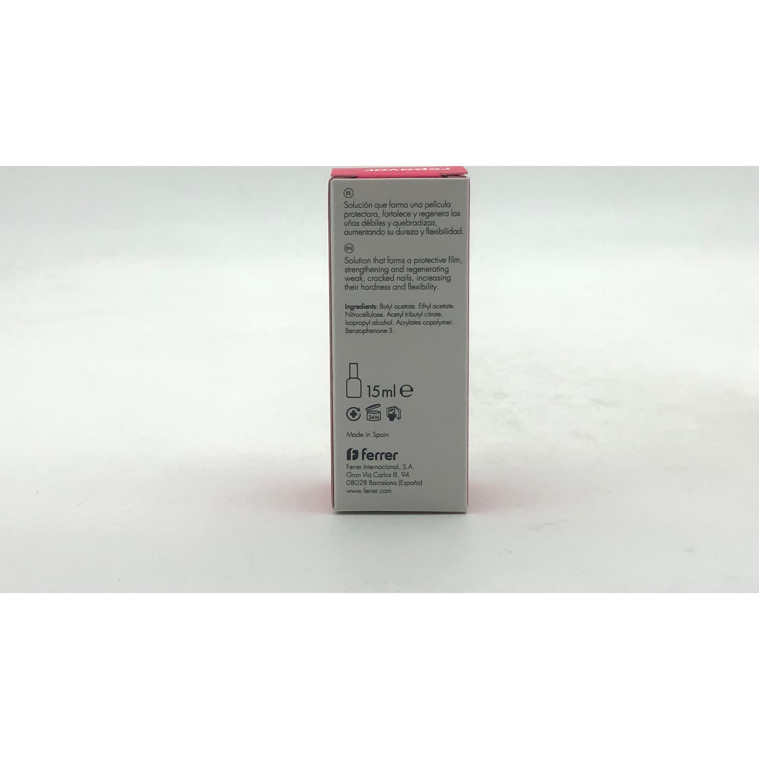 Su fórmula con nitrocelulosa y polímeros acrílicos crea una película protectora sobre la uña que permite aumentar su dureza y flexibilidad.